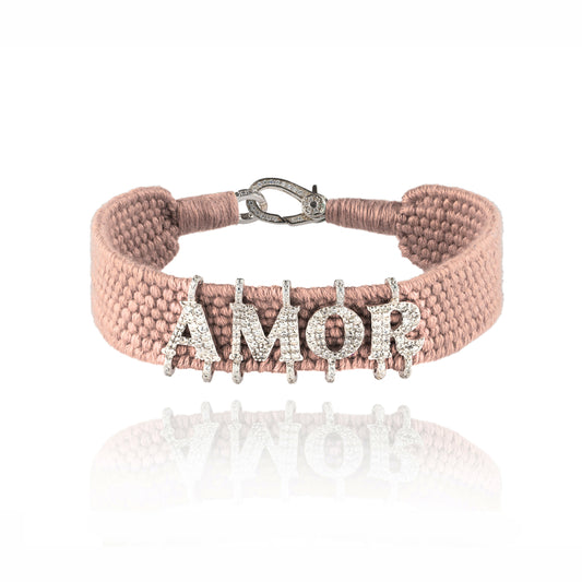 Fil de coton, argent 925, Améthystes, perles colorées et diamants