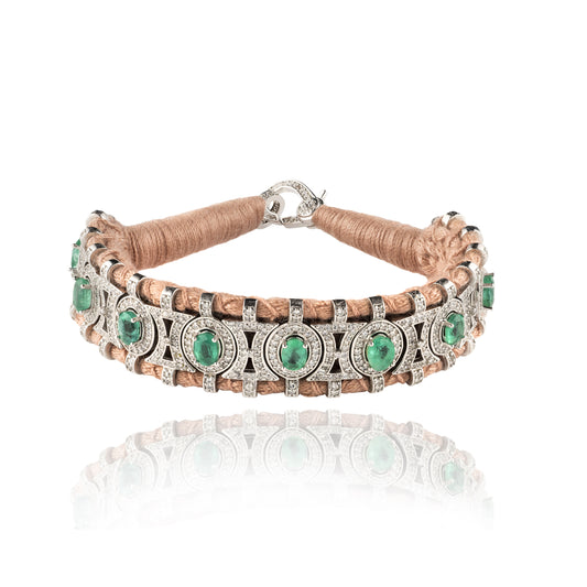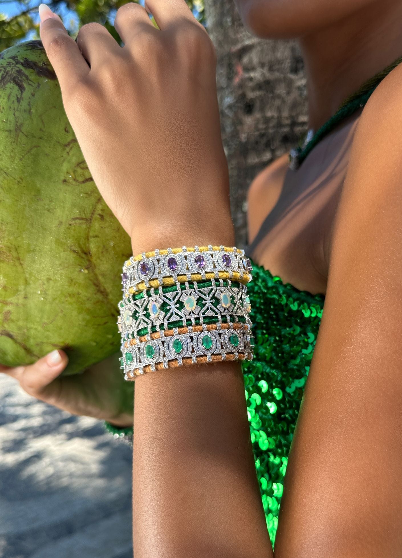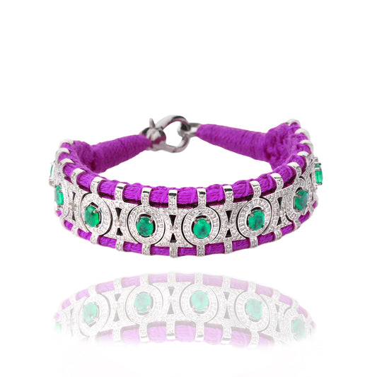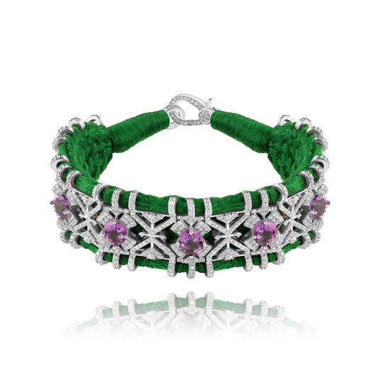 Fil lurex tressé, Argent 925, Améthyste verte et diamants