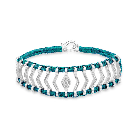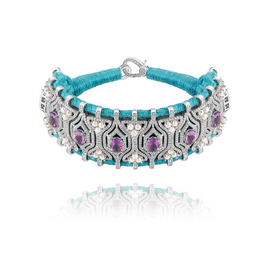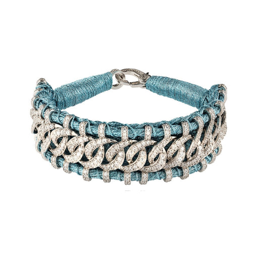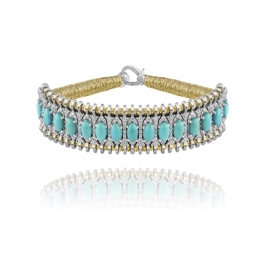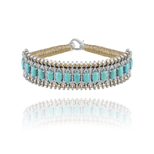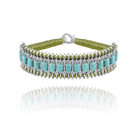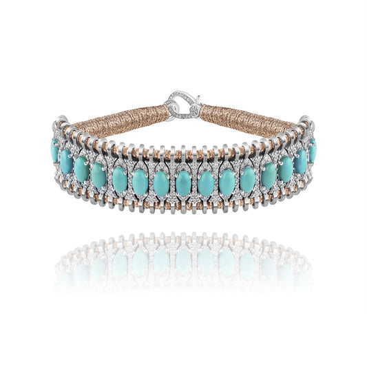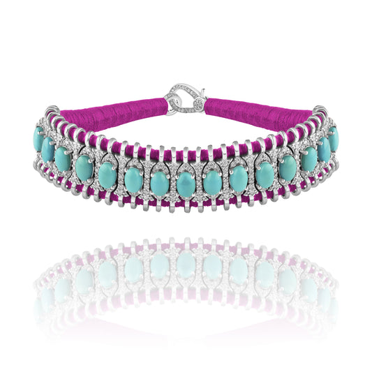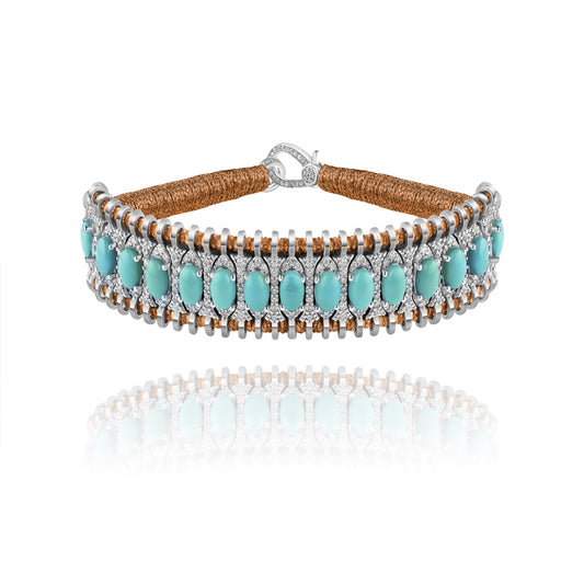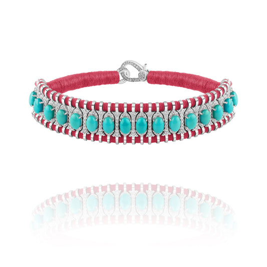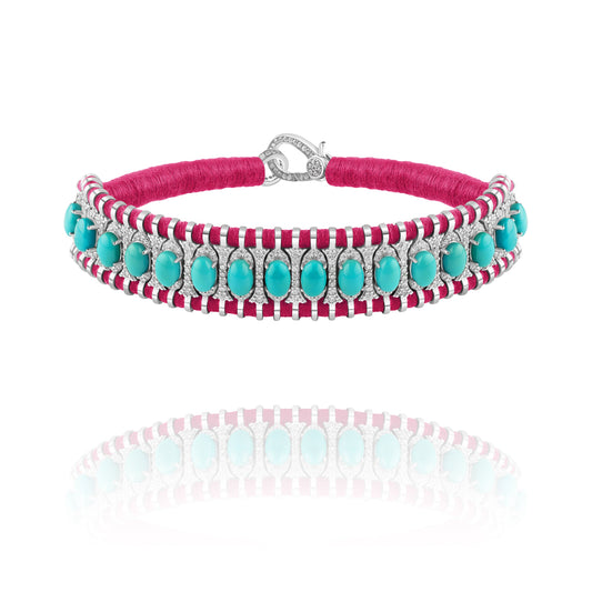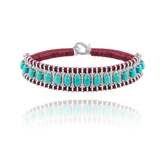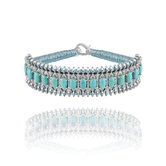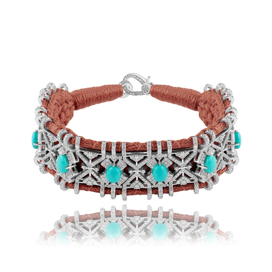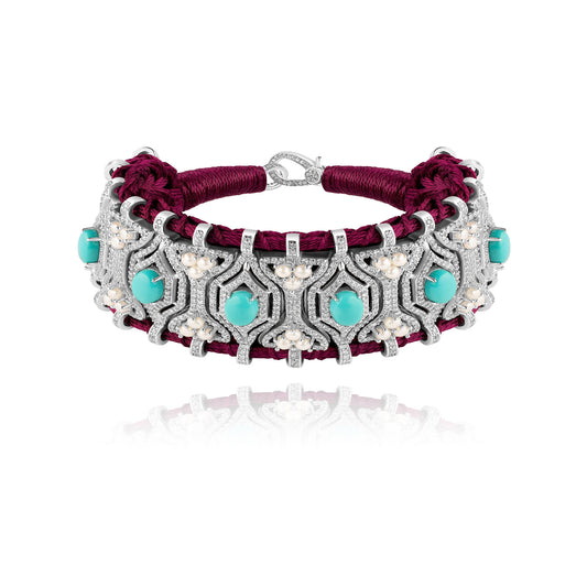 Fil de coton, argent 925, Turquoise, perles et diamants