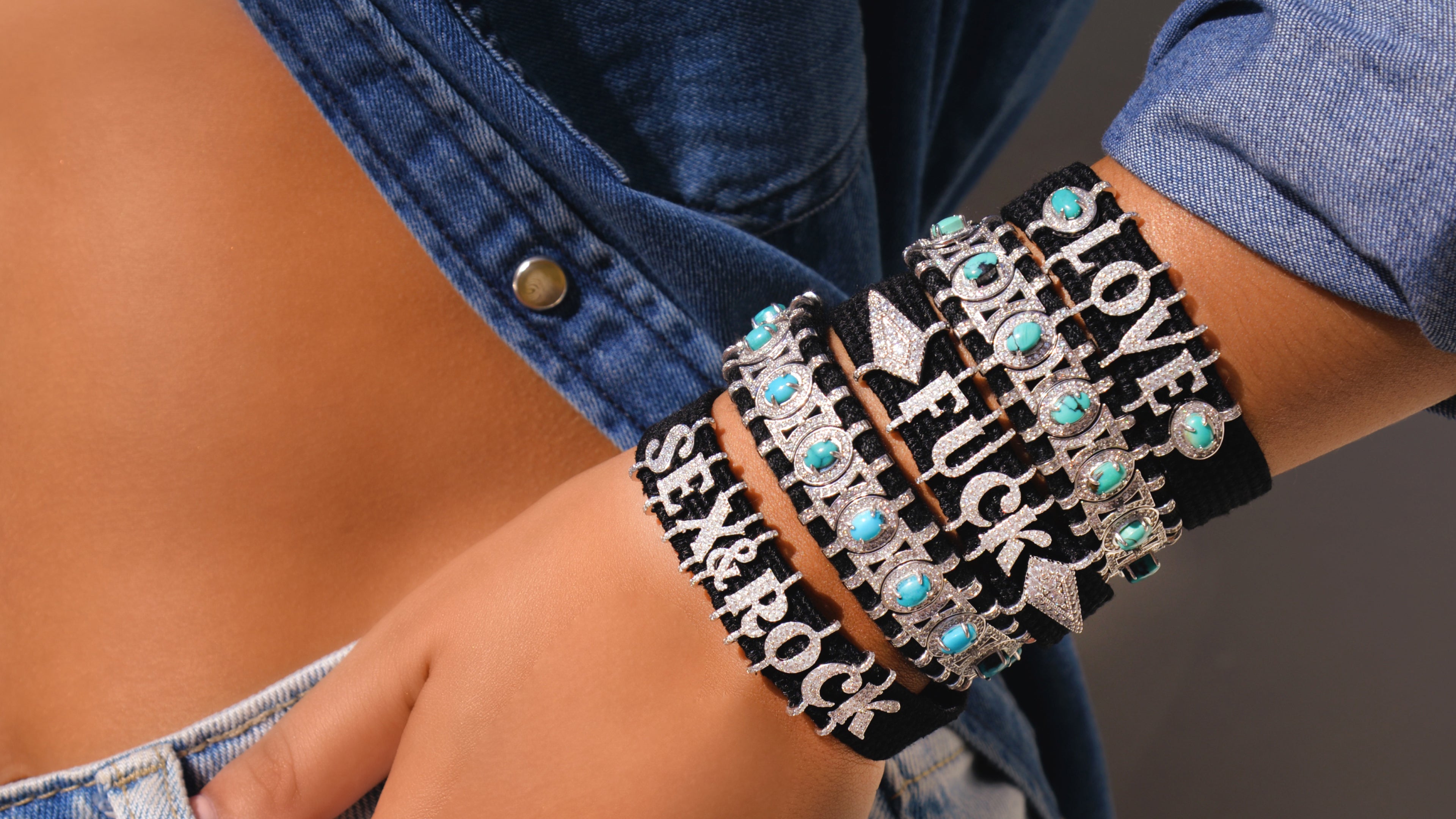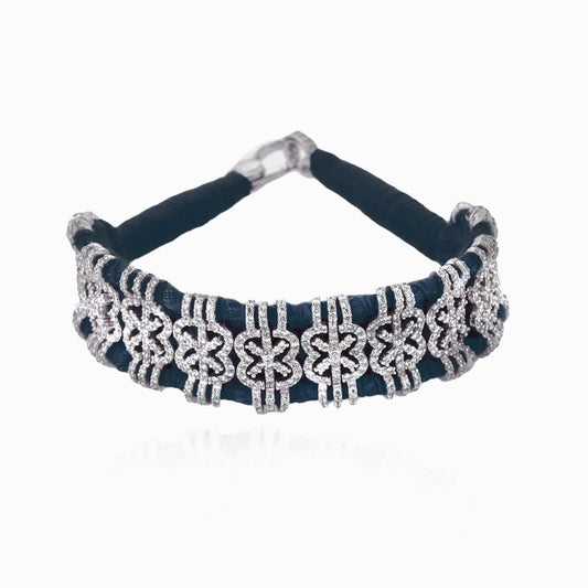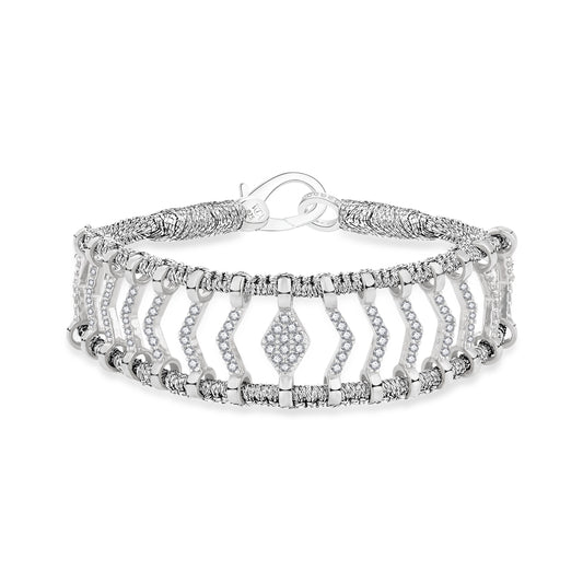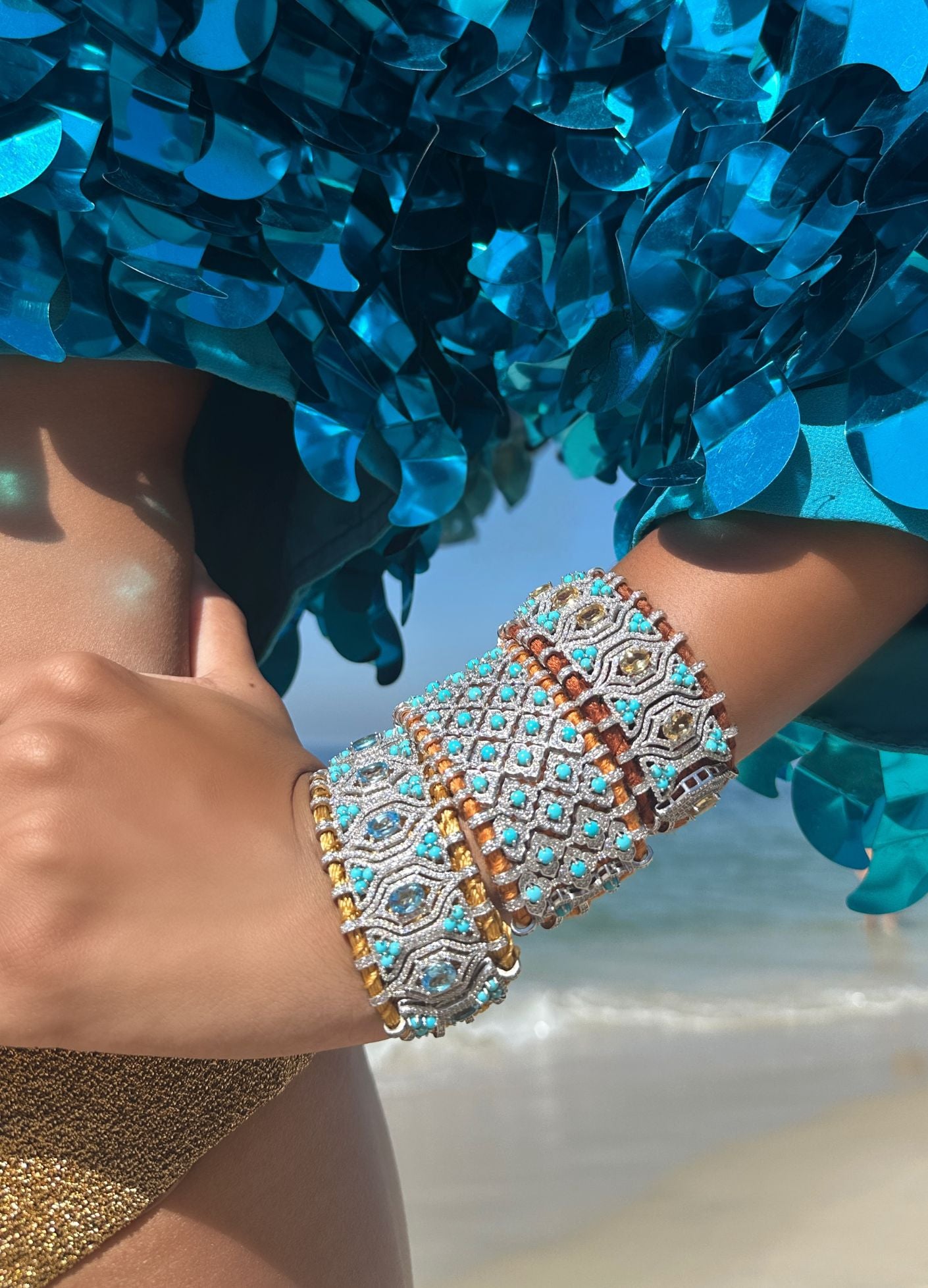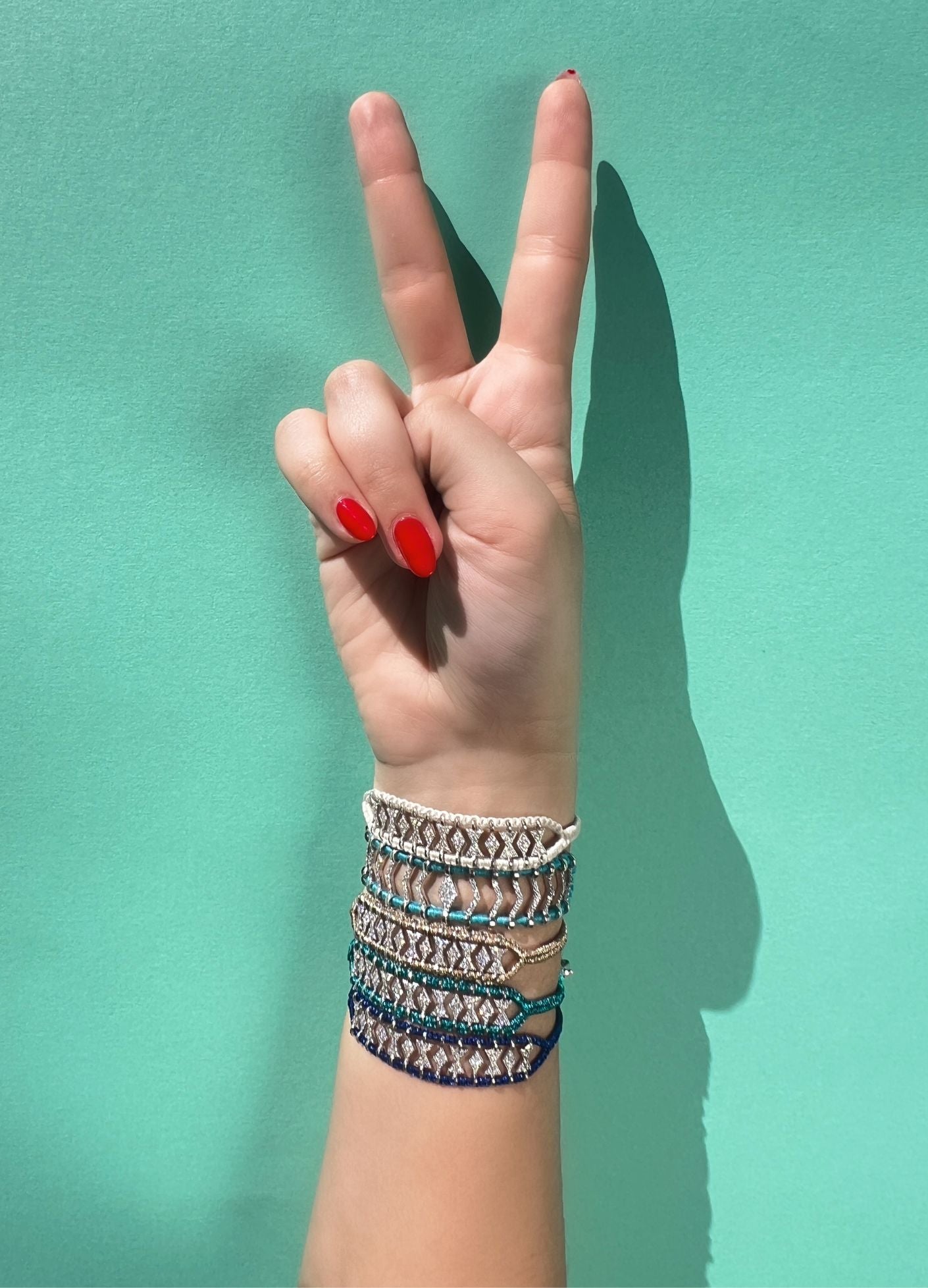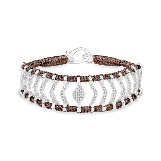 Fil de coton, argent 925, Turquoise, perles et diamants