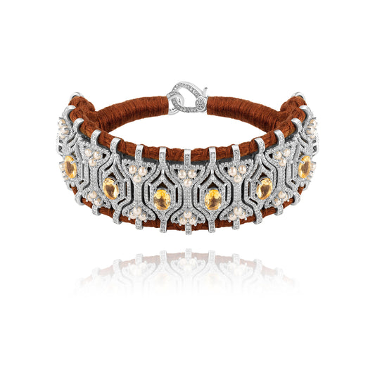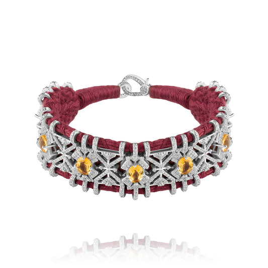 Fil lurex tressé, Argent 925, Citrine de Madère et diamants
