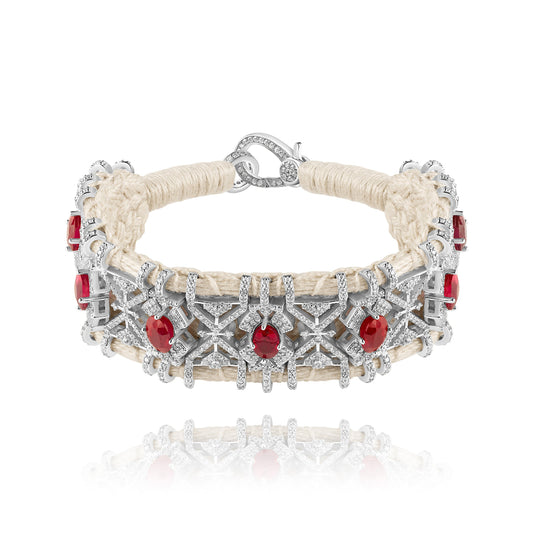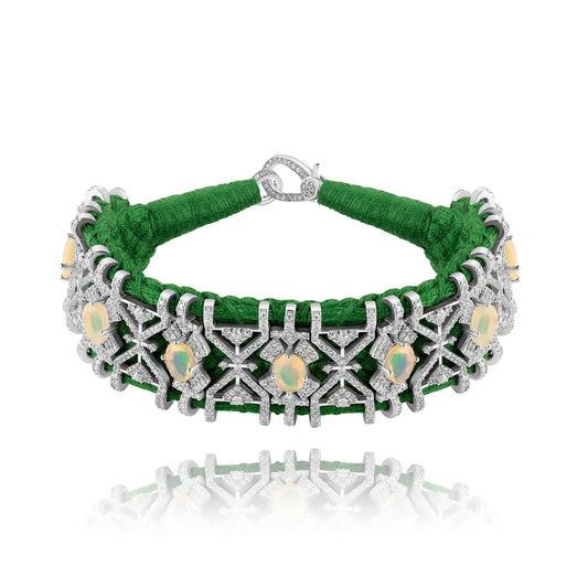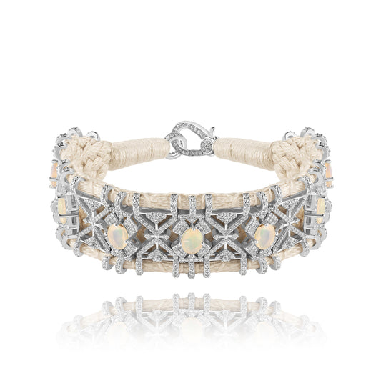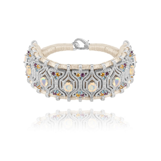 Fil de coton, argent 925, Opales, perles colorées et diamants