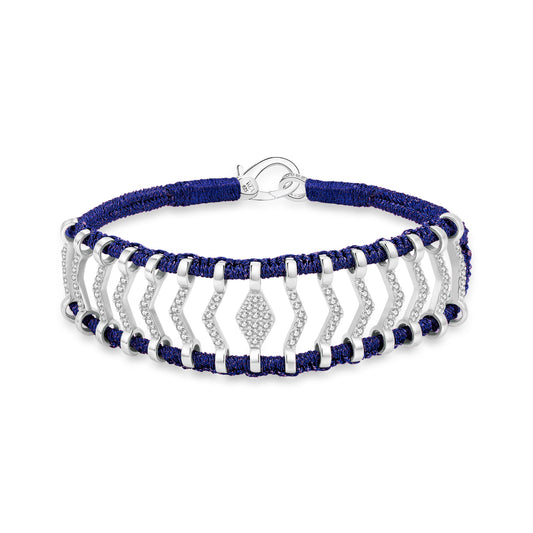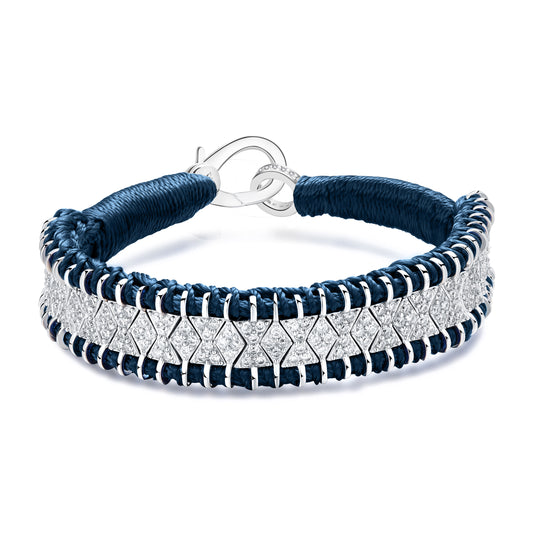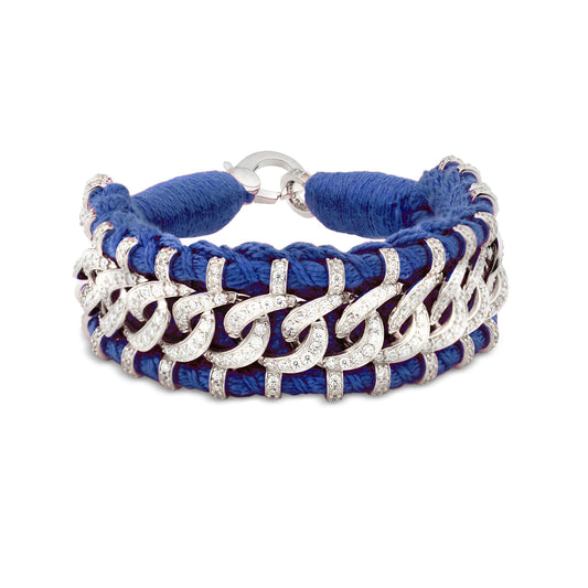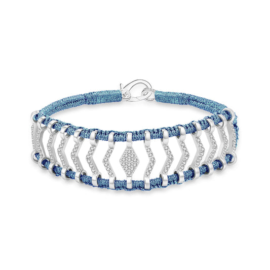 Fil de coton, argent 925, Topaze blue swiss et diamants