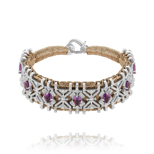 Fil lurex tressé, Argent 925, Améthyste et diamants