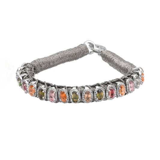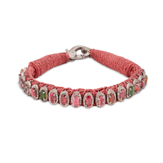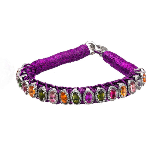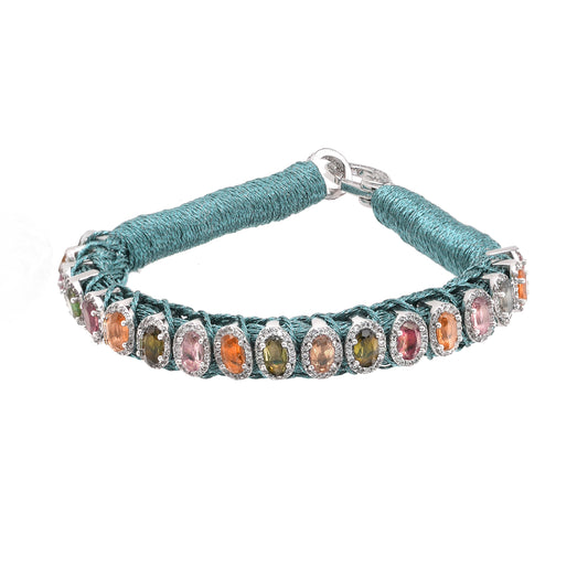 Fil de coton, argent 925, tourmalines rainbow et diamants