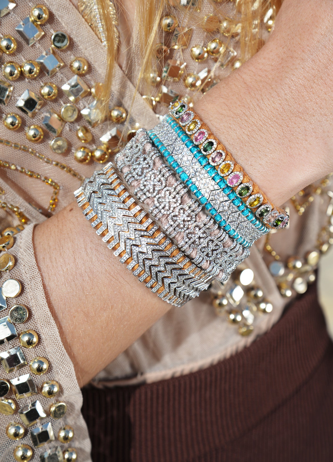 Fil de coton et lurex, Vermeil, Cristal, saphirs et diamants