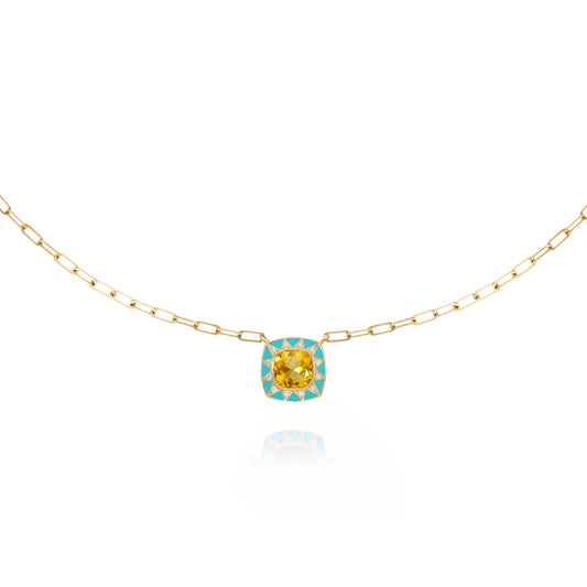 Chaine en or 18 carats, émail turquoise, citrine et diamantsPrix habituel 1 590 €Prix habituelPrix unitaire / parPrix promotionnel 1 590 € -