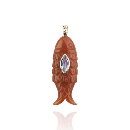 Cornaline sculptée, or 14 carats, topaze et diamantsPrix habituel 1 265 €Prix habituelPrix unitaire / parPrix promotionnel 1 265 € -