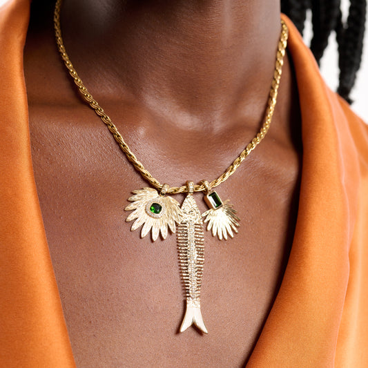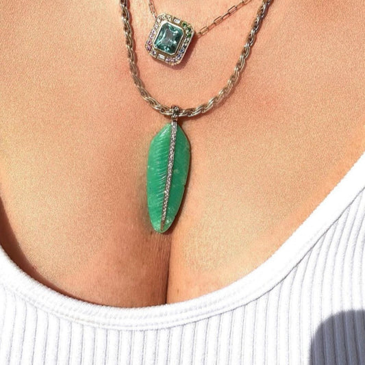 Chrysoprase sculptée, cristal de roche, or 14 carats et diamants.Prix habituel 1 300 €Prix habituelPrix unitaire / parPrix promotionnel 1 300 € -