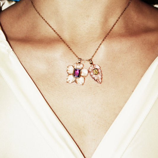 Quartz rose sculptée, Or 14 carats et diamantsPrix habituel 1 850 €Prix habituelPrix unitaire / parPrix promotionnel 1 850 € -