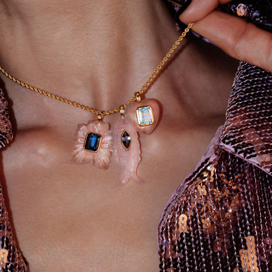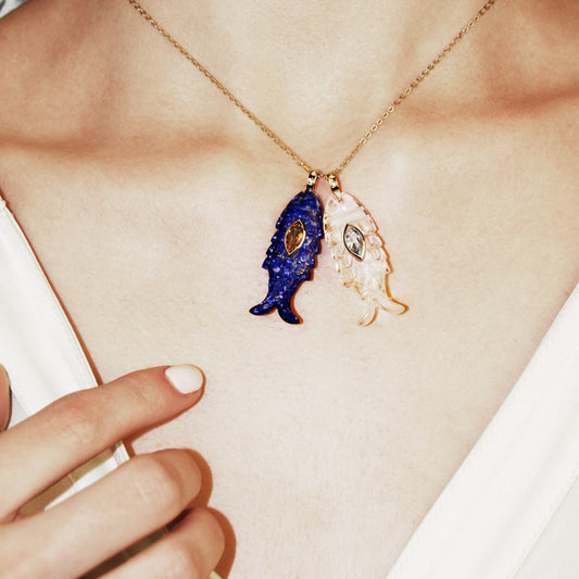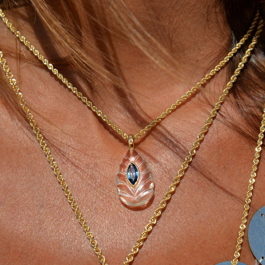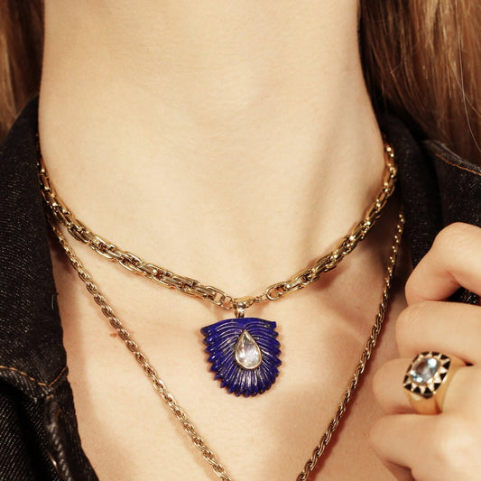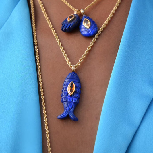 Lapis sculptée, quartz cristal, or 14 carats et diamantsPrix habituel 1 850 €Prix habituelPrix unitaire / parPrix promotionnel 1 850 €