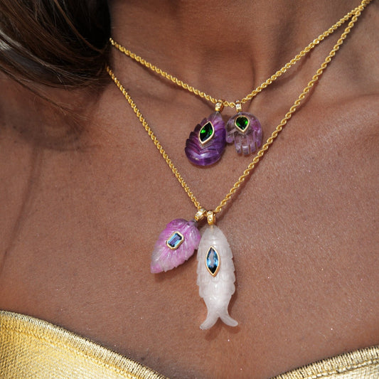 Améthyste sculptée, améthyste verte, or 14 carats et diamantsPrix habituel 1 725 €Prix habituelPrix unitaire / parPrix promotionnel 1 725 €