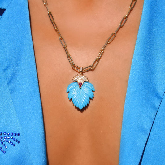 Turquoise sculptée, rubis, or 14 carats et diamantsPrix habituel 1 150 €Prix habituelPrix unitaire / parPrix promotionnel 1 150 € -