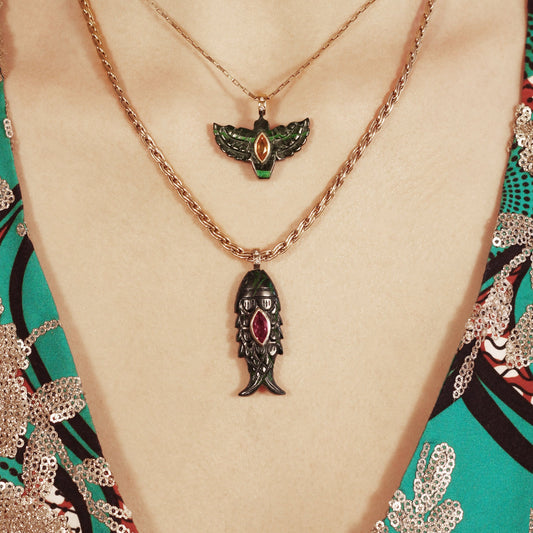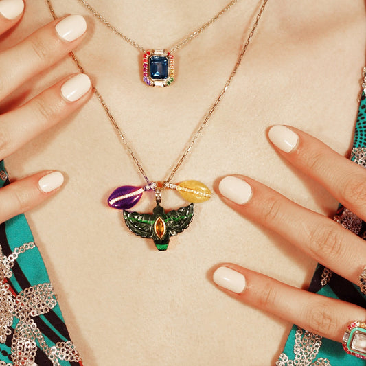 Onyx sculpté, Or 14 carats, pierres multicolores et diamantsPrix habituel 1 150 €Prix habituelPrix unitaire / parPrix promotionnel 1 150 € -