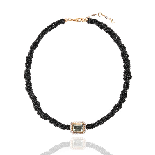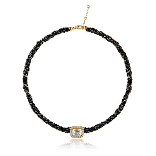 Black Zircon stone beads, Crystal quartz, 14k gold and diamondsRegular price $3,891Regular priceUnit price / perSale price $3,891 -