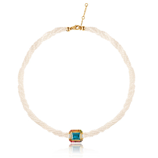 Tornado Small Pearl Necklace - Blue Swiss Topaze