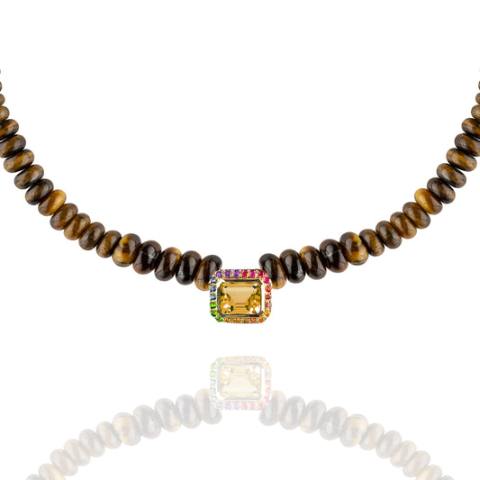 Eye of tiger stones, Citrine, 18k gold and rainbow stonesRegular price $3,155Regular priceUnit price / perSale price $3,155 -