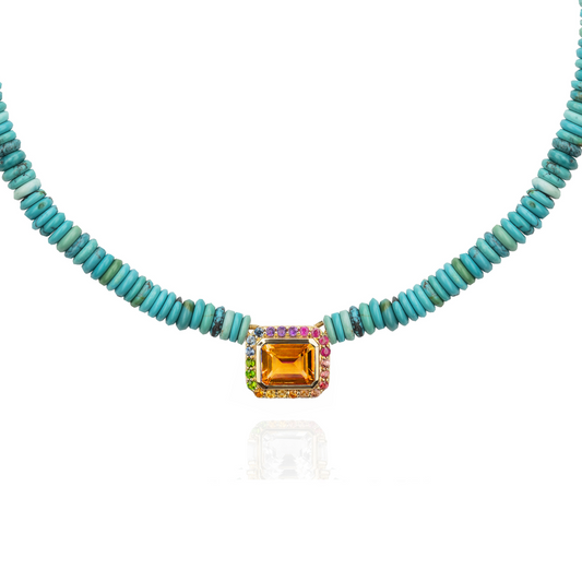 Turquoise stone beads, Madeira citrine, 14k gold and diamondsRegular price $3,350Regular priceUnit price / perSale price $3,350 -