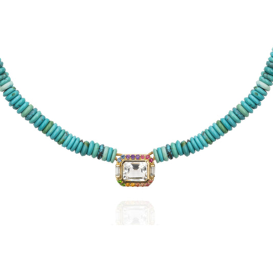 Turquoise stones, rainbow enamel, Crystal, 18k gold and diamondsRegular price $3,155Regular priceUnit price / perSale price $3,155 -