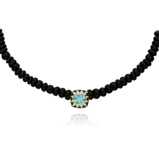 Onyx stones, black enamel, sky blue topaz, 18-carat gold and diamonds.Regular price $3,155Regular priceUnit price / perSale price $3,155 -