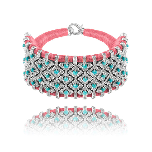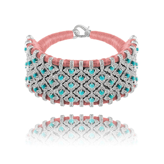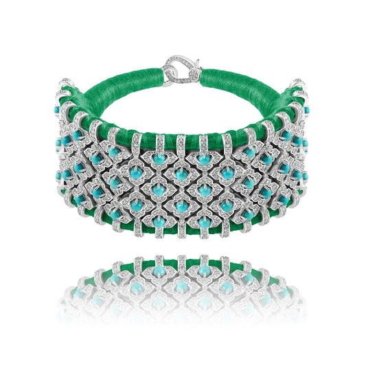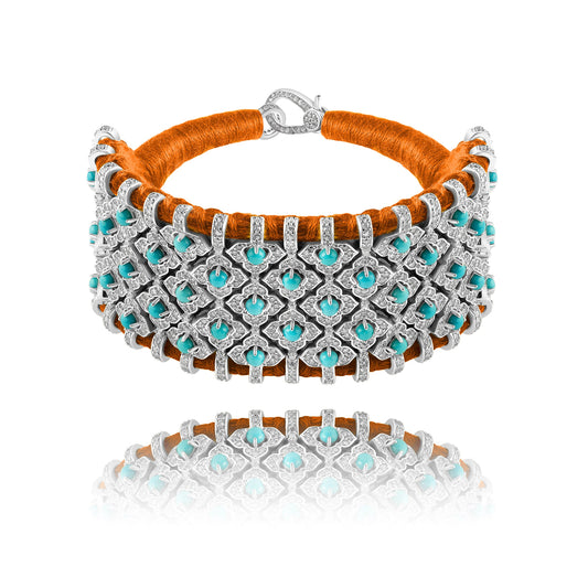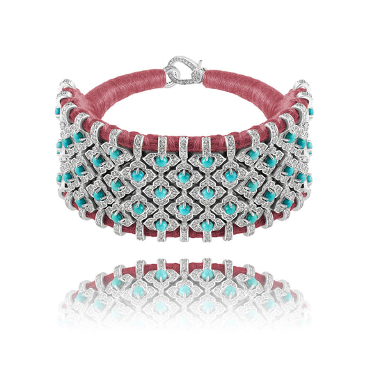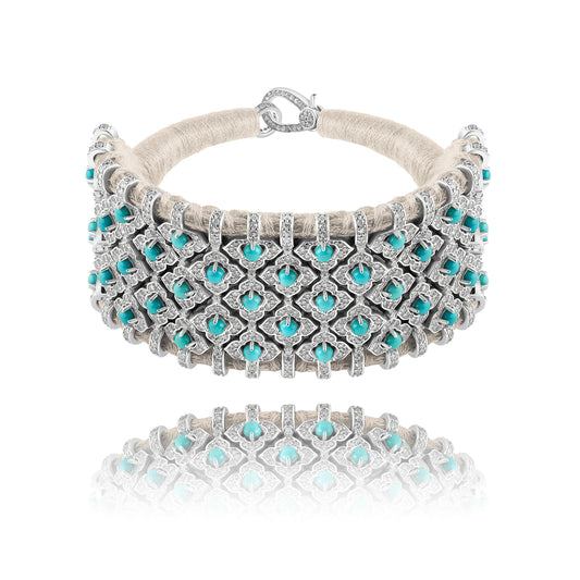 Cotton thread, 925 Silver, turquoise and diamondsRegular price $3,056Regular priceUnit price / perSale price $3,056