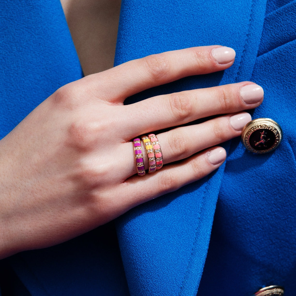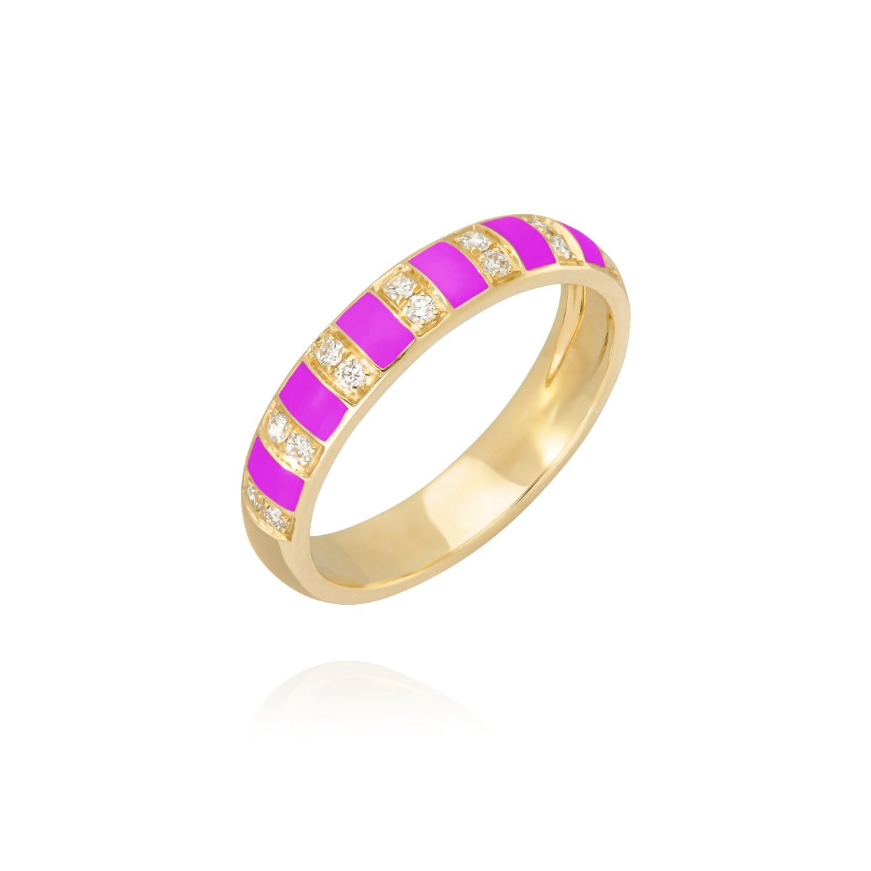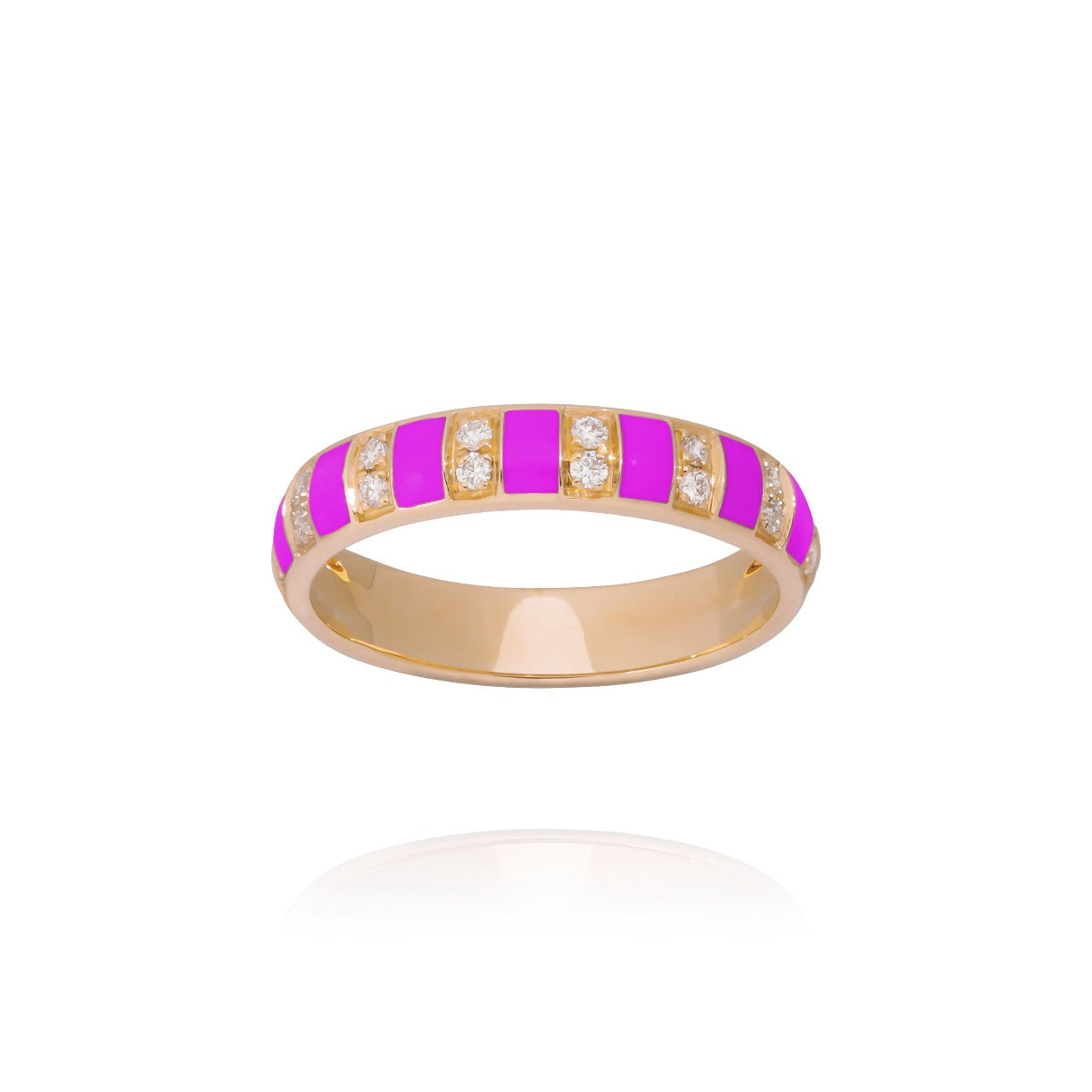 This ring 18 carat rose golds is a perfect combination between an alliance classic and singular with these purple enameled interstices. This ring asserts its character even more when accumulated with other colors.