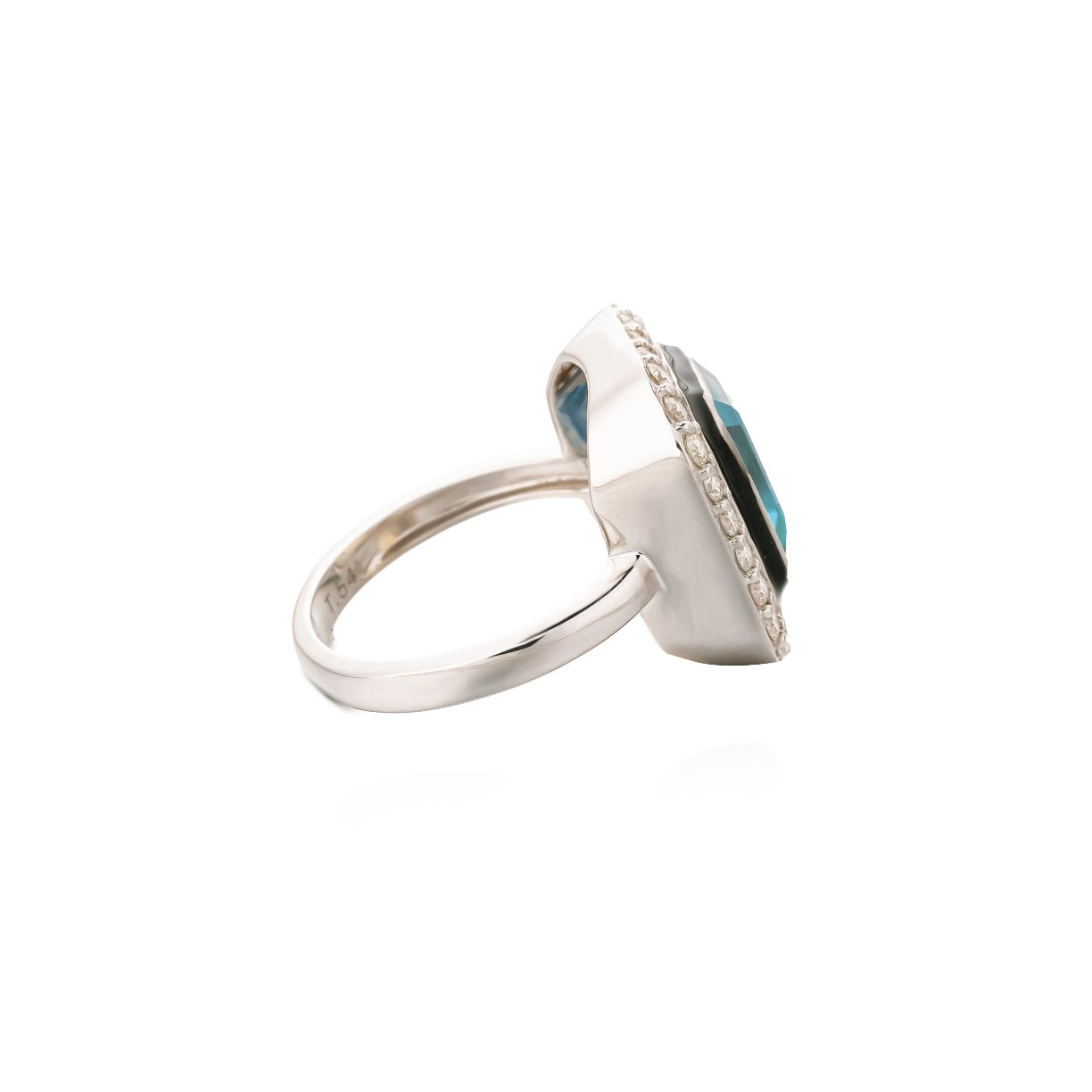 This imposing ring will perfectly adorn your hand this summer. This piece in silver 925 set with lovely diamonds is as precious as it is fun and will be your favorite chic and colorful piece. The enamel which surrounds this Topaz brings an offbeat touch to this piece that reminds us of the large cocktail rings of the 1920s.