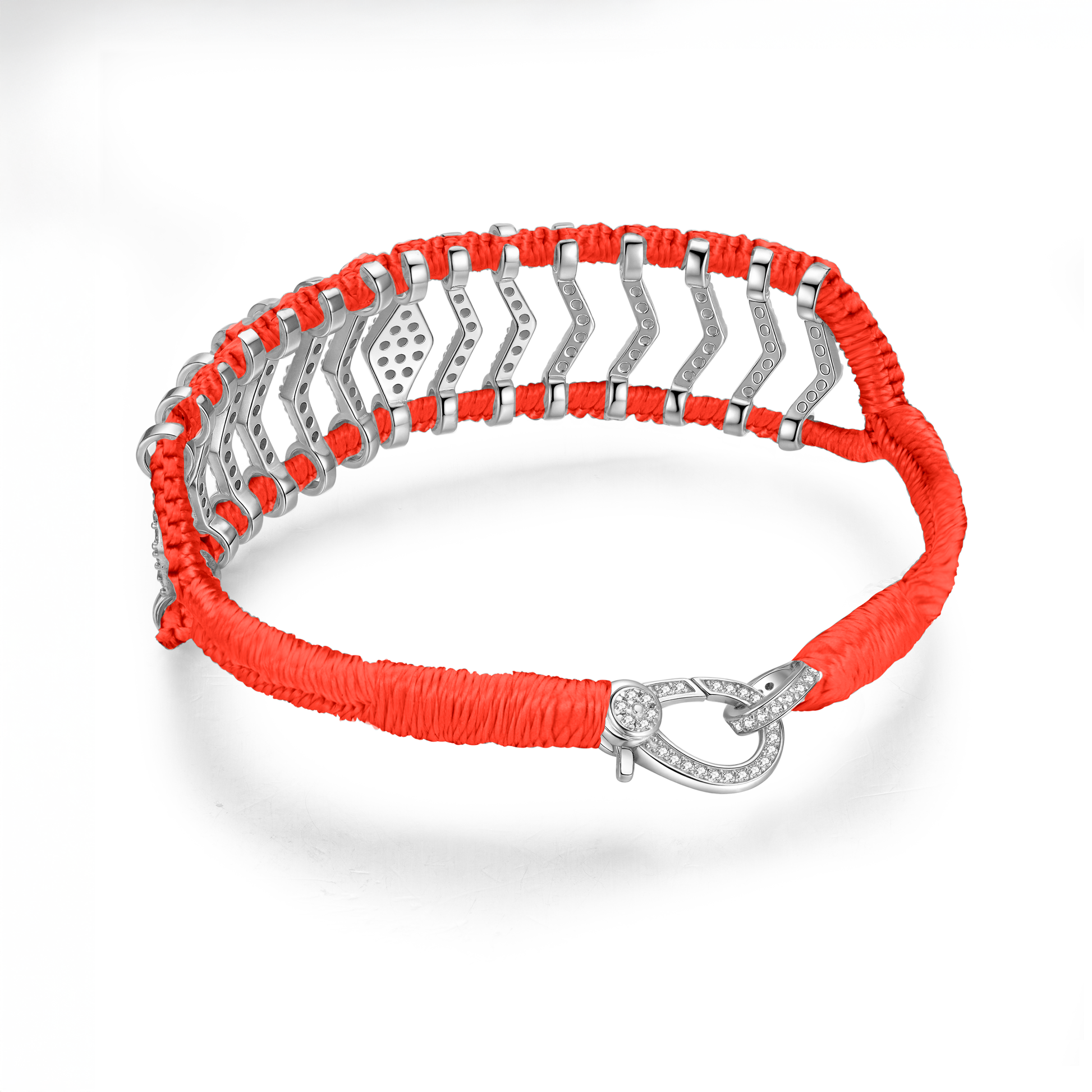 This bracelet in flash color thread will be your bohemian lucky summer. It is decorated with an openwork pattern in silver fully set with moissanites, which gives this piece a definitely precious look that you will love. Choose a size 1cm higher than the measure of your wrist.
