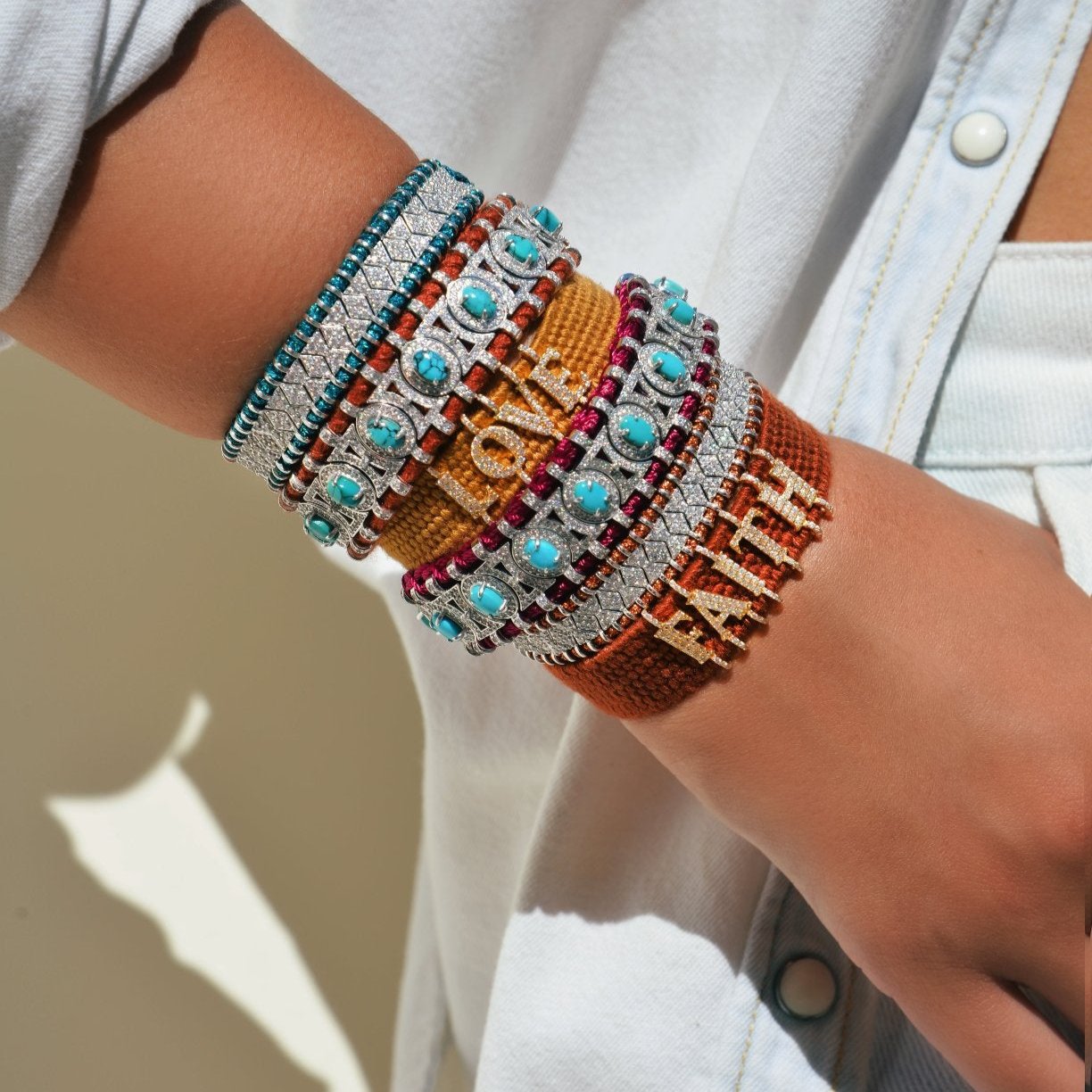 Our braided bracelets were created as lucky talismans. The word 'LOVE' in vermeil, set with multiple moissanites, is woven into the bracelet’s design. A piece with a truly precious appearance that delivers a message of universal love. You can also create your own bracelet by using our customization service. Design the piece of jewelry