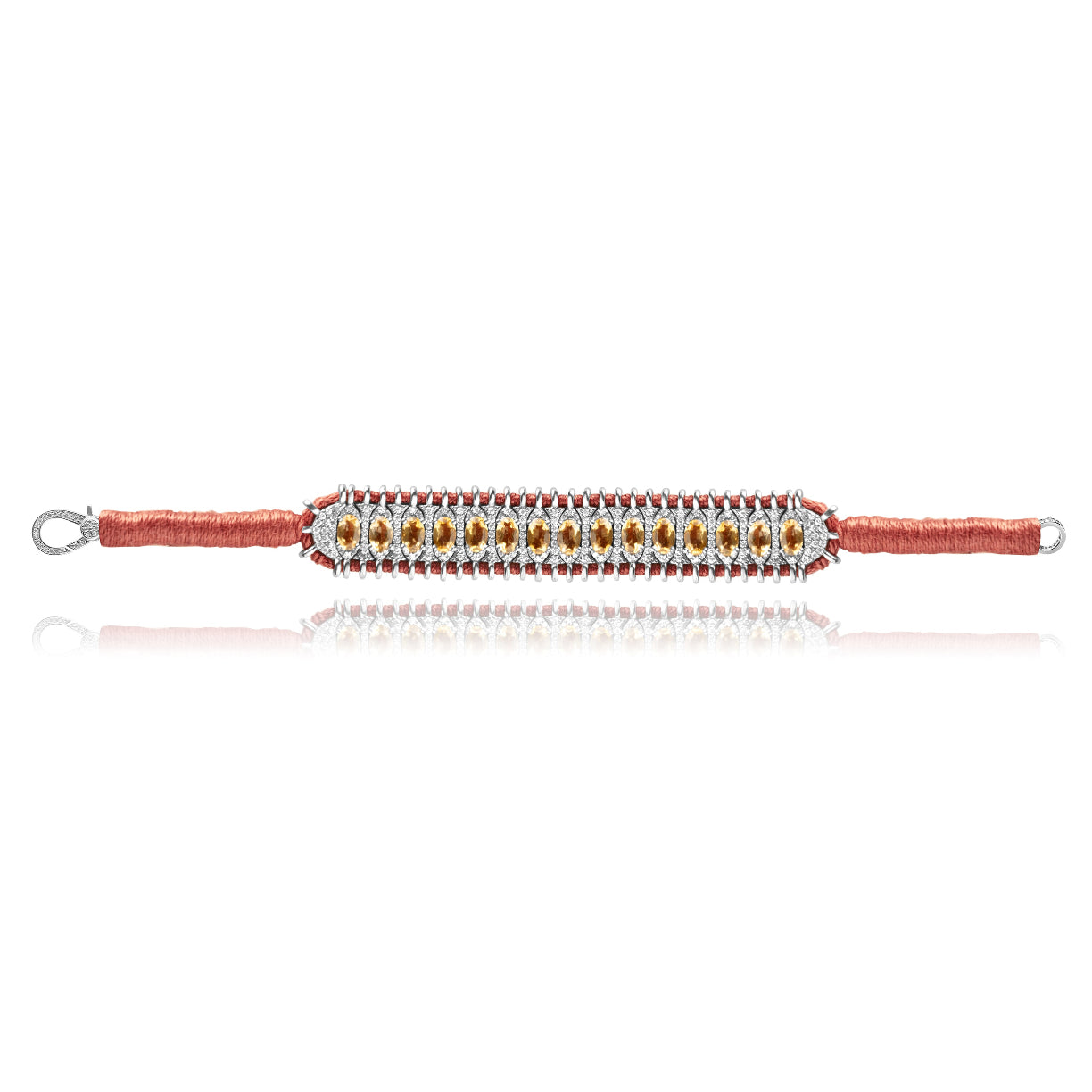 Cotton thread, 925 silver, Citrines and diamonds