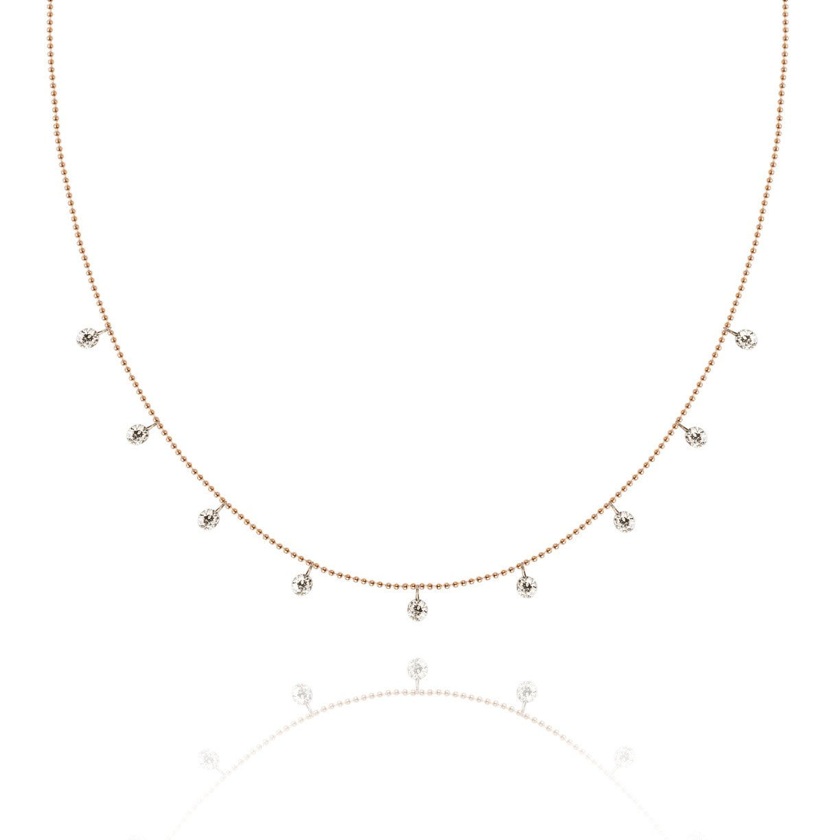Ball chain necklace in 18-carat rose gold enhanced with lovely round diamonds.