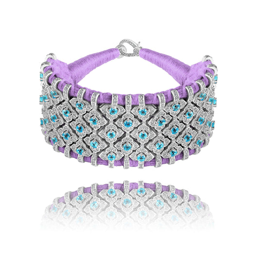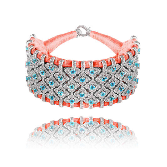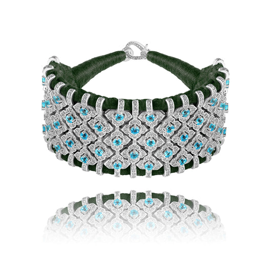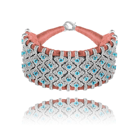 Cotton thread, 925 Silver, blue swiss topaz and diamonds