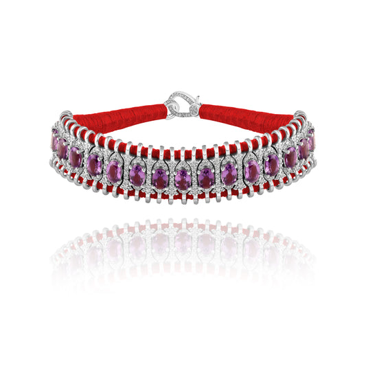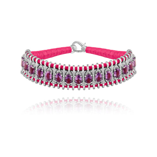 Cotton thread, 925 Silver, rainbow Tourmalines and diamonds