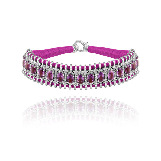 Lurex thread, 925 Silver, rainbow Tourmalines and diamonds