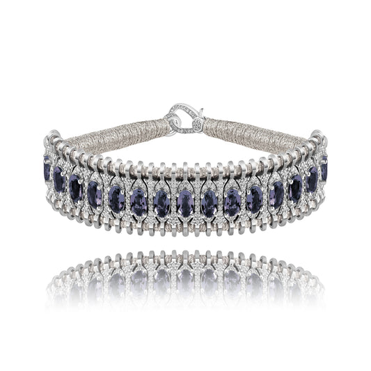 Cotton and lurex thread, Vermeil, Crystal, Sapphires and Diamonds