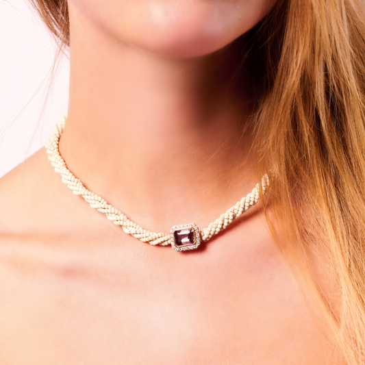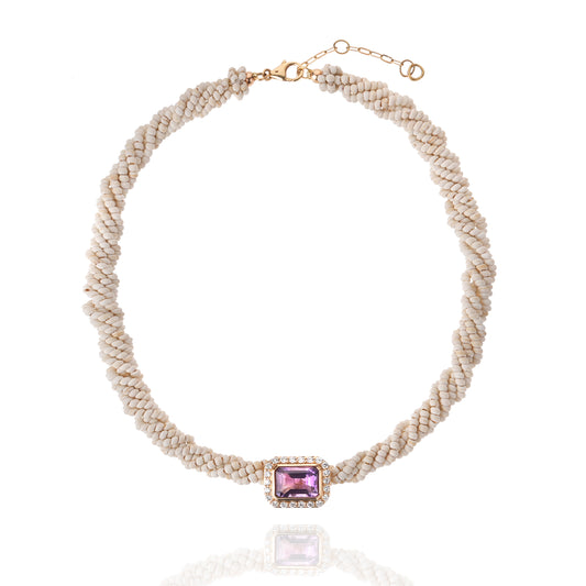Pink Quartz stone beads, Amethyst, 18k gold and diamondsRegular price 2 990 €Regular priceUnit price / perSale price 2 990 € -