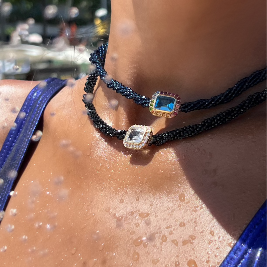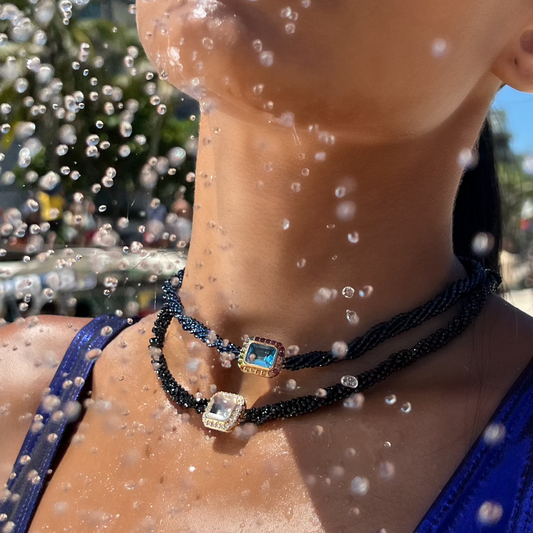 Tornado Small Pearl Necklace - Blue Swiss Topaze