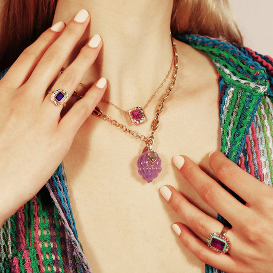Carved amethyst, 14-karat gold, diopside and diamonds.Regular price 1 300 €Regular priceUnit price / perSale price 1 300 €