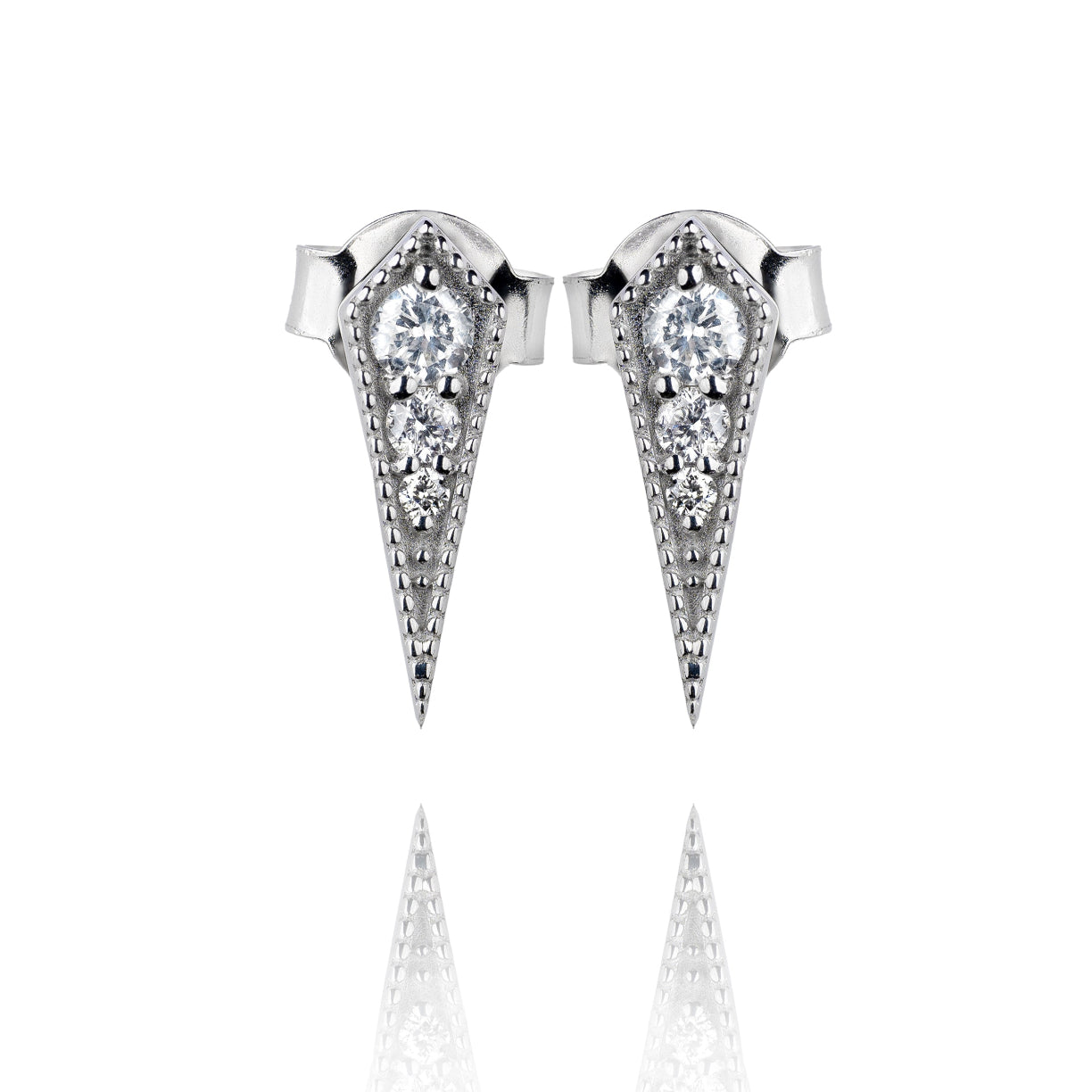 18k white gold spike earrings set with diamonds. Sold as a pair.