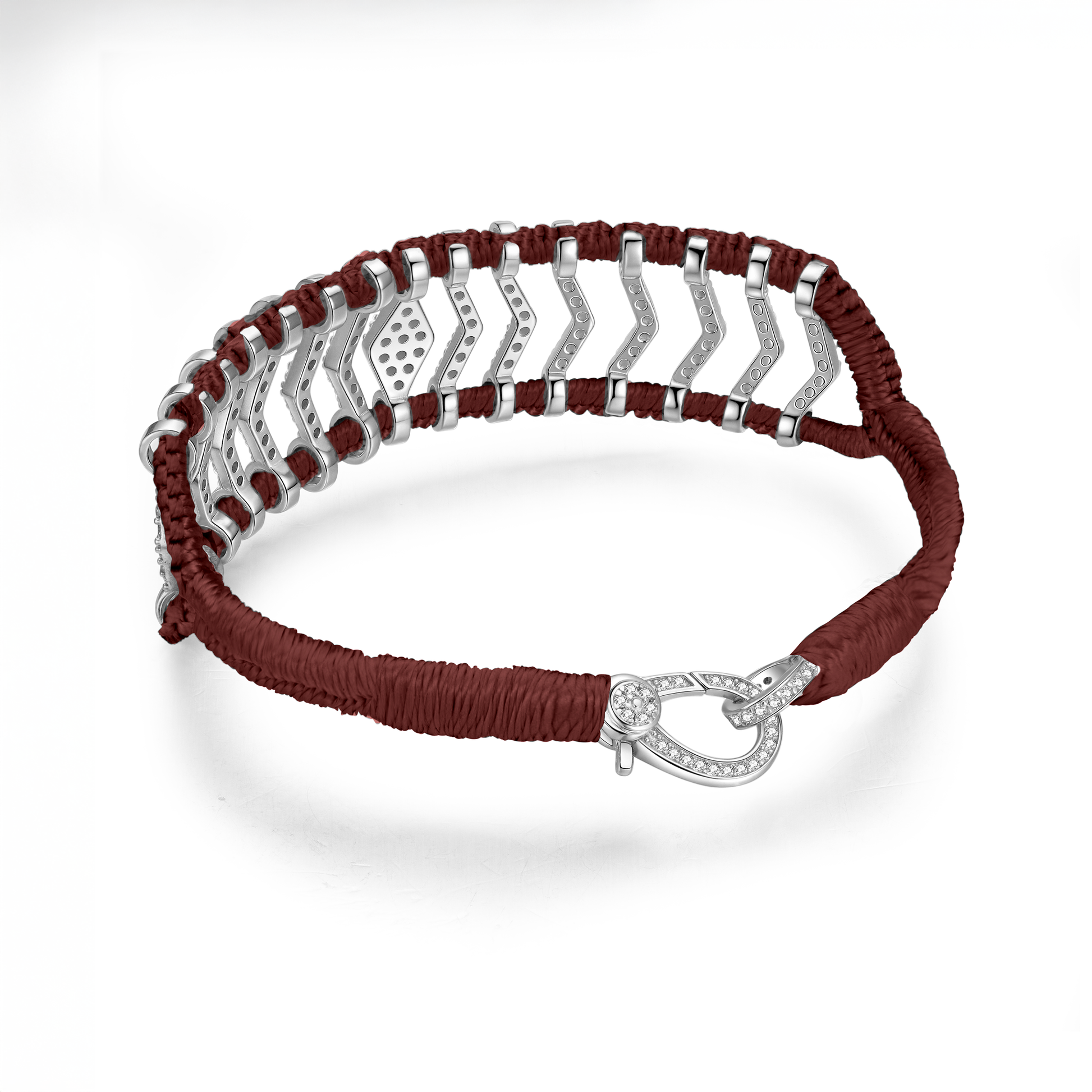 This bracelet in choco color thread will be your bohemian lucky summer. It is decorated with an openwork pattern in silver fully set with moissanites, which gives this piece a definitely precious look that you will love. Choose a size 1cm higher than the measure of your wrist.