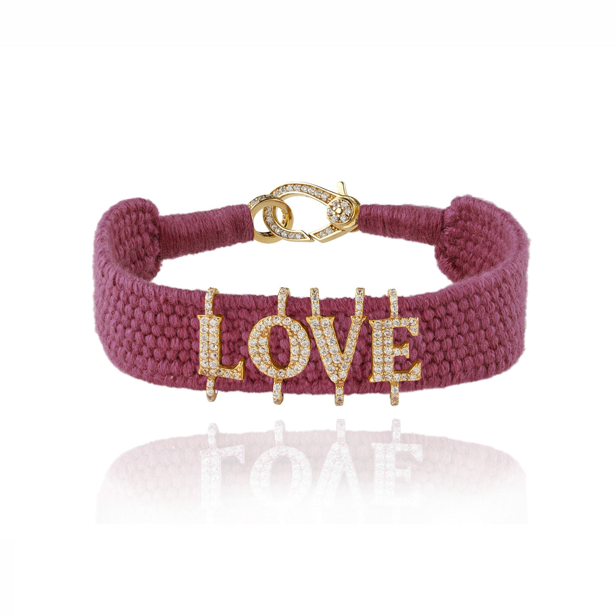 Our braided bracelets were created as lucky talismans. The word 'LOVE' in 18k Gold plated 925 Silver, set with multiple moissanites, is woven into the bracelet’s fabric. A piece with a truly precious appearance that delivers a message of universal love. You can also create your own bracelet by using our customization service. Design the piece of jewelry