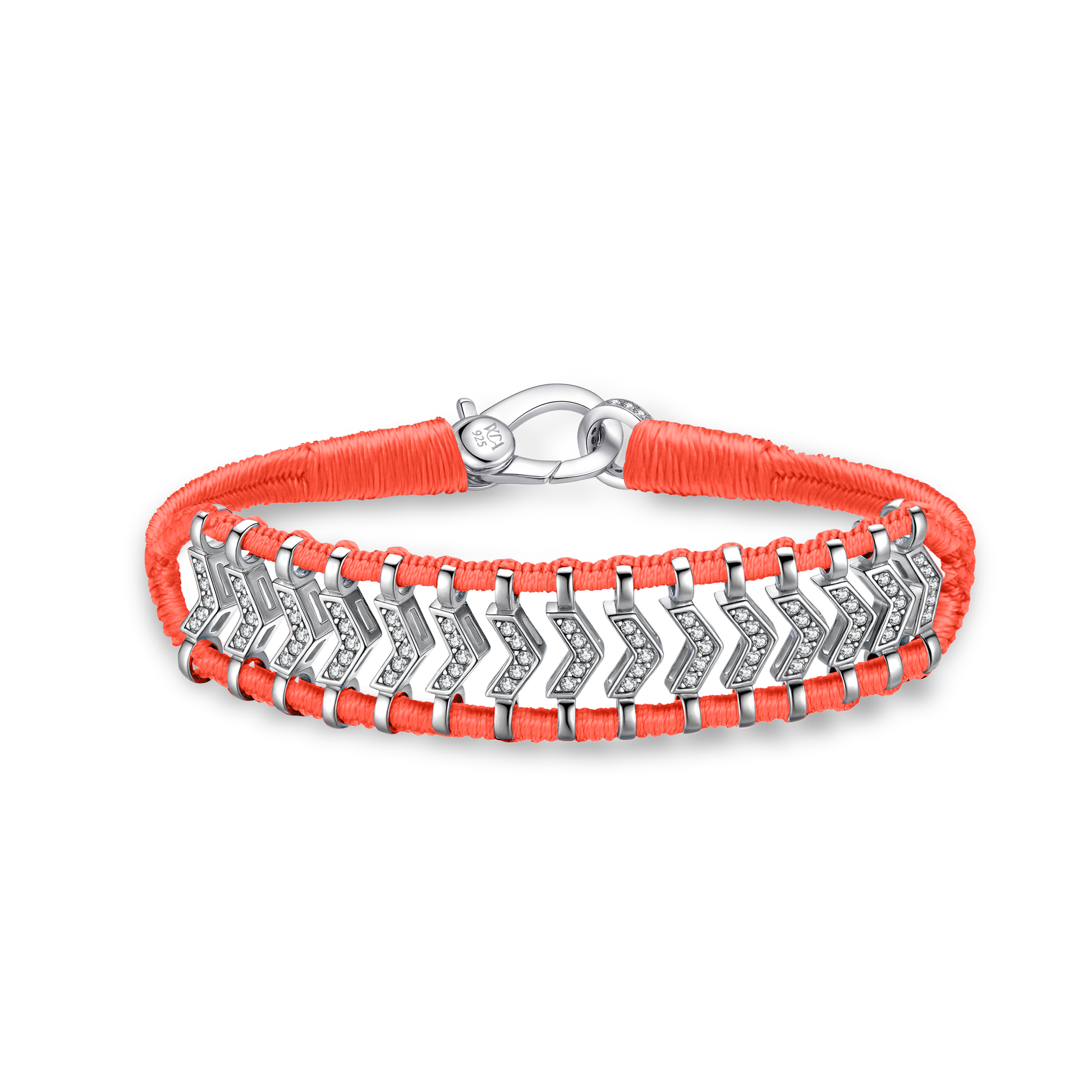 This bracelet in flash thread color will be your bohemian lucky summer. It is decorated with an openwork pattern in silver fully set with moissanites, which gives this piece a definitely precious look that you will love.