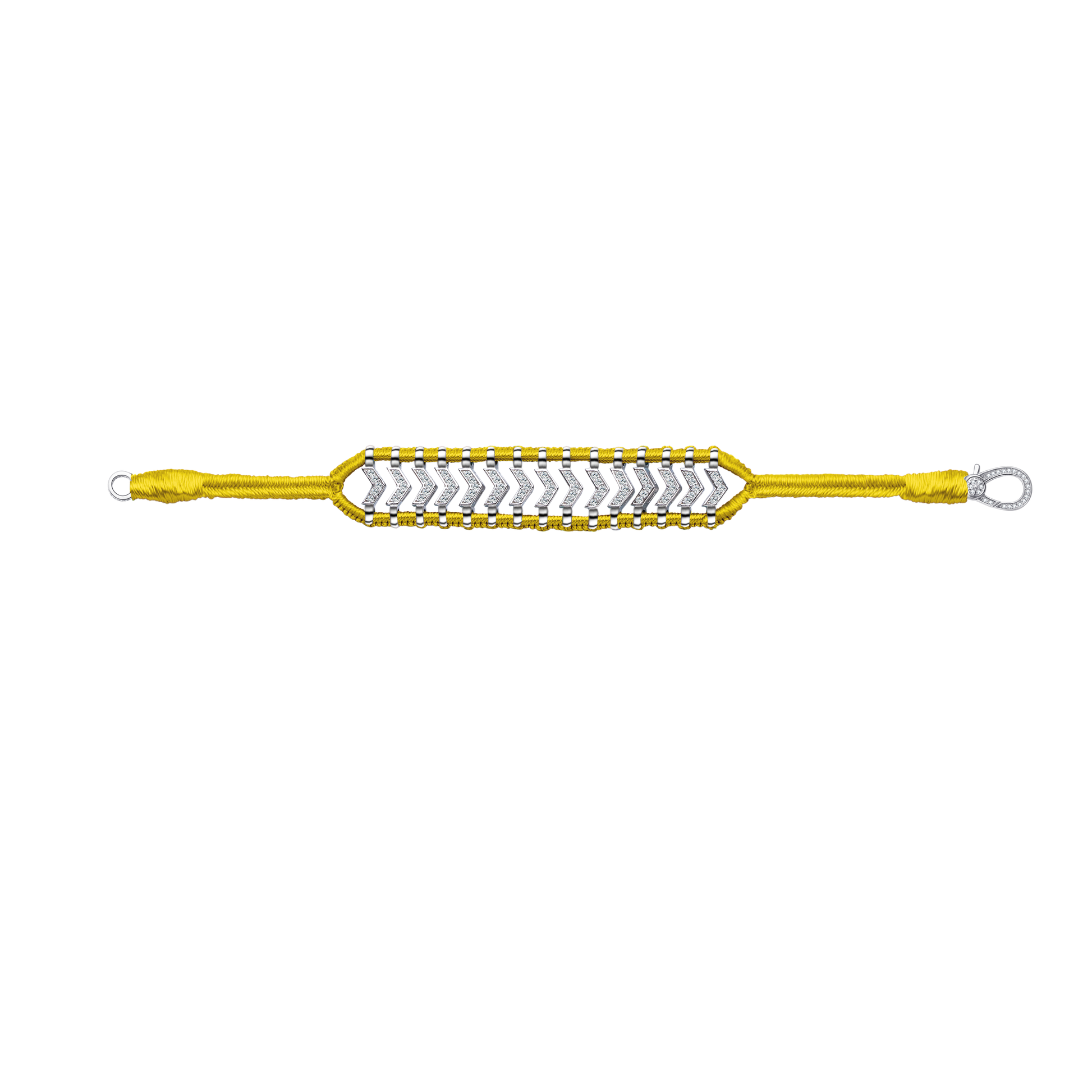 This bracelet in yellow thread color will be your bohemian lucky summer. It is decorated with an openwork pattern in silver fully set with moissanites, which gives this piece a definitely precious look that you will love.