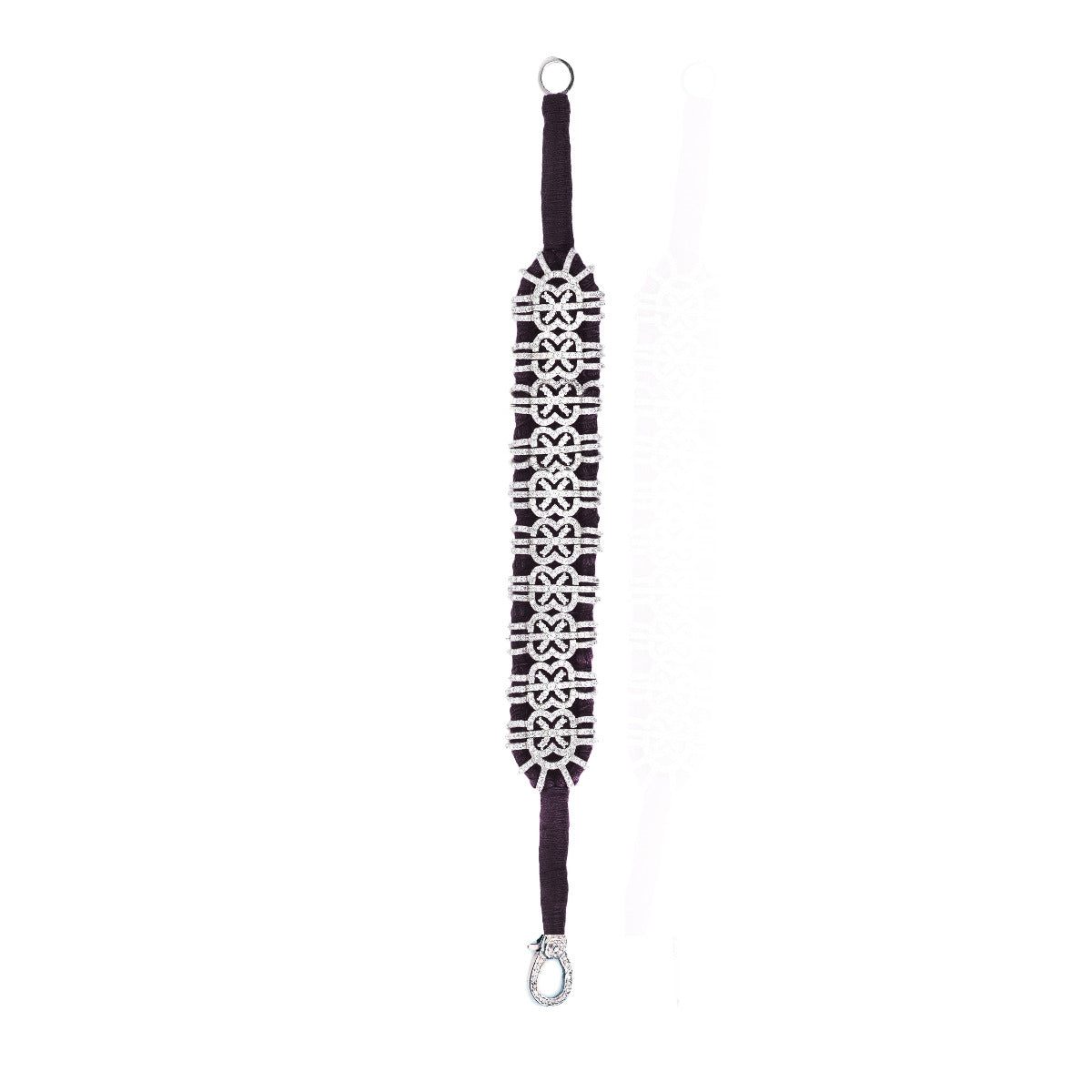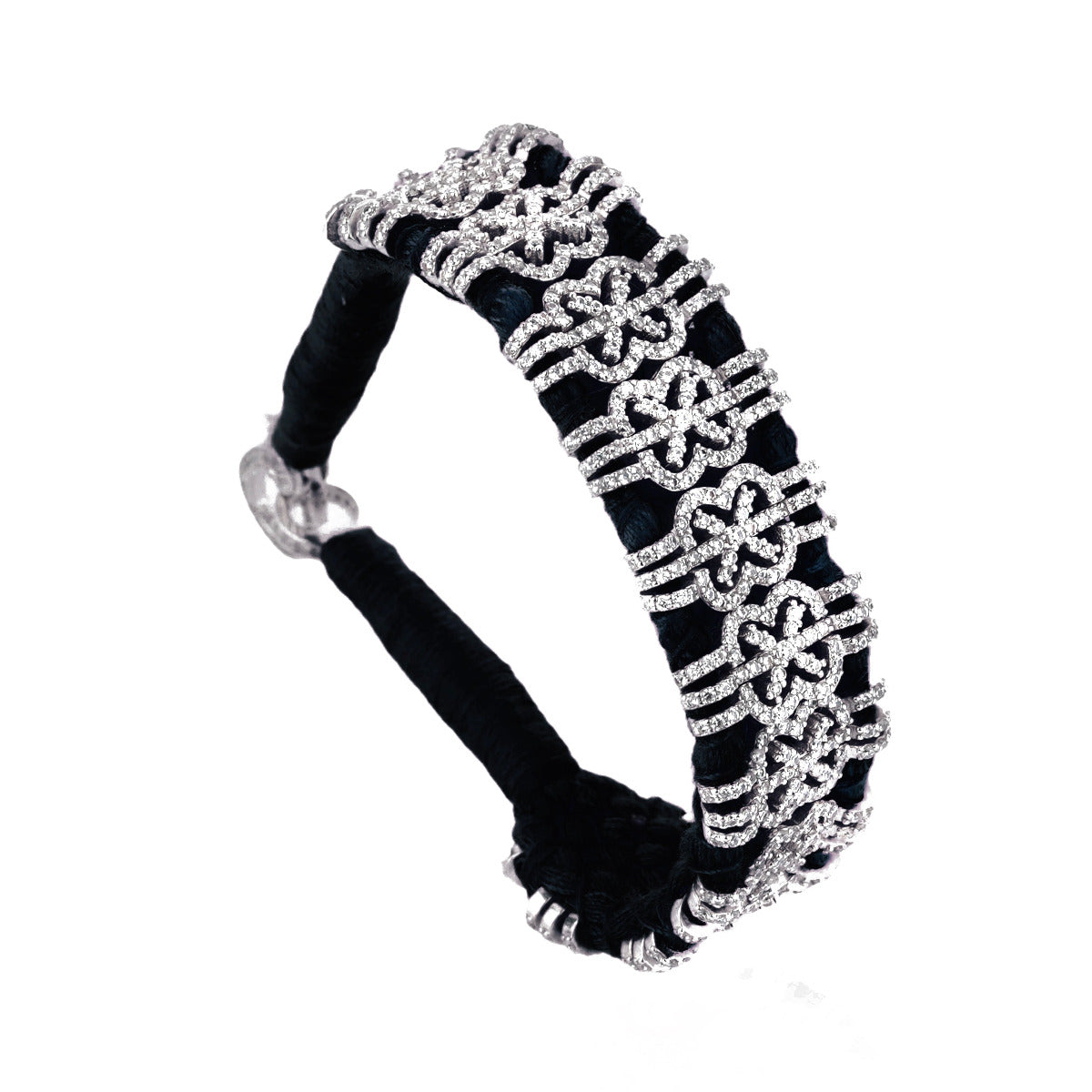 This thread bracelet black will be your lucky charm summer bohemian. It is entirely decorated with silver forming a pattern starburst beautifully crafted and set with more than 650 diamonds. This definitely precious looking piece is the friendship bracelet you will love.