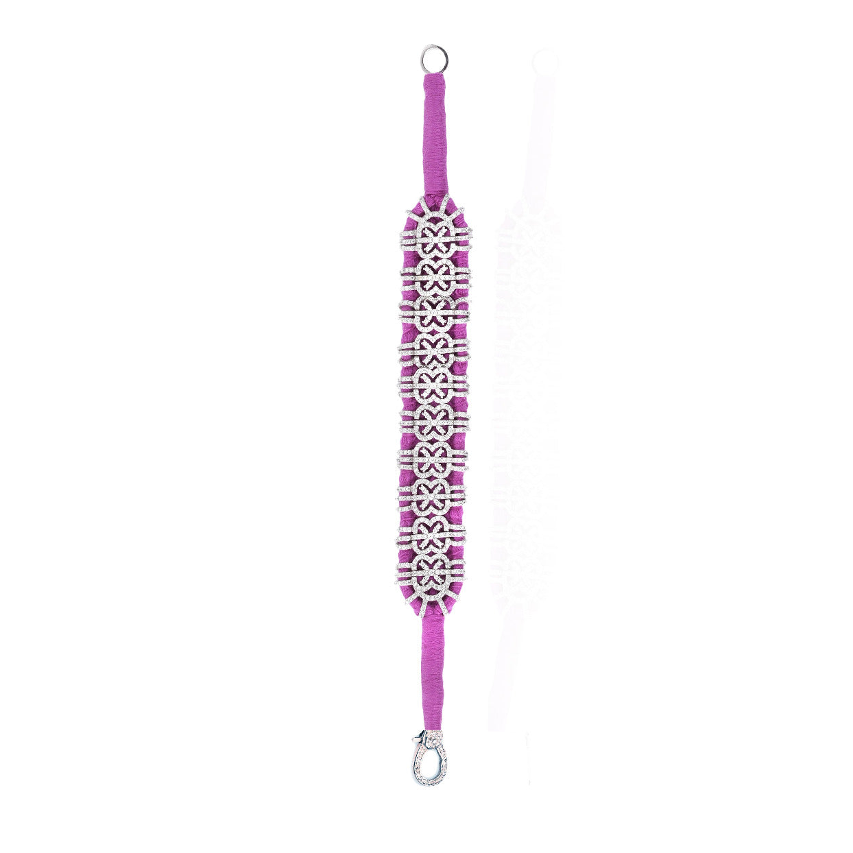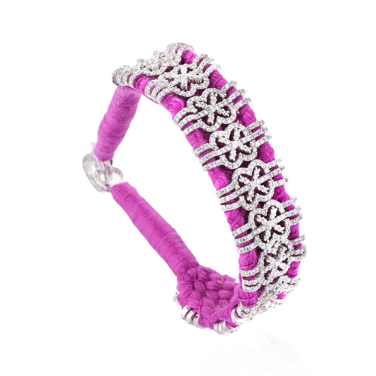 This thread bracelet purple will be your lucky charm summer bohemian. It is entirely decorated with silver forming a pattern starburst beautifully crafted and set with more than 650 diamonds. This definitely precious looking piece is the friendship bracelet you will love.