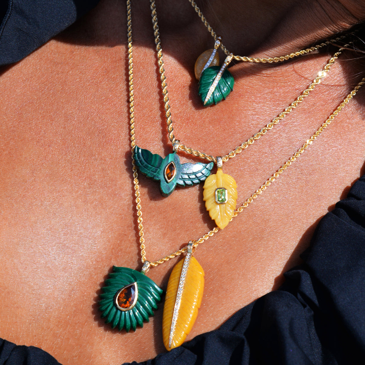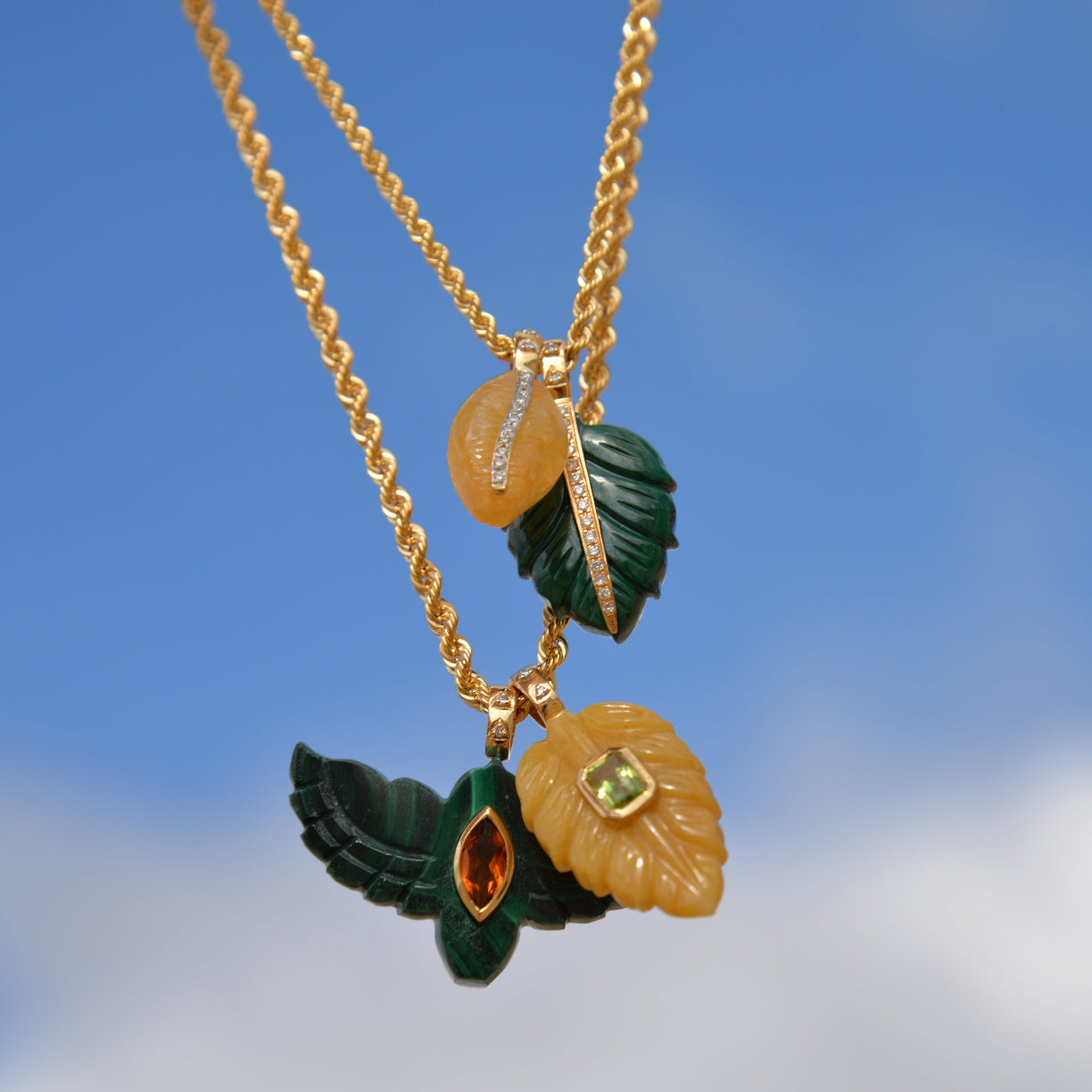 Carved Malachite, Citrine, 14K Gold and Diamonds