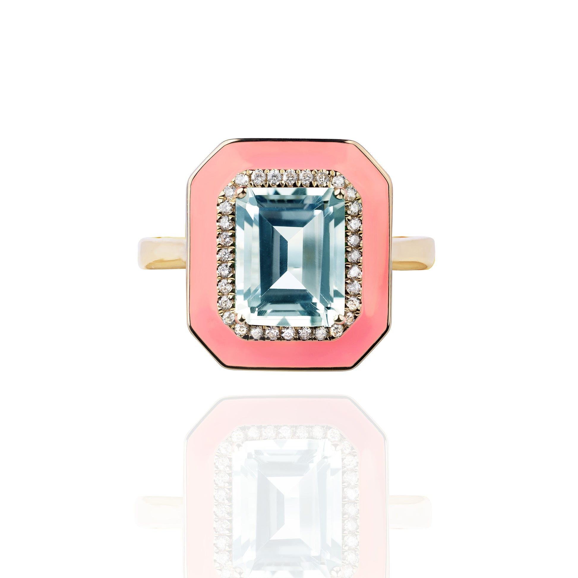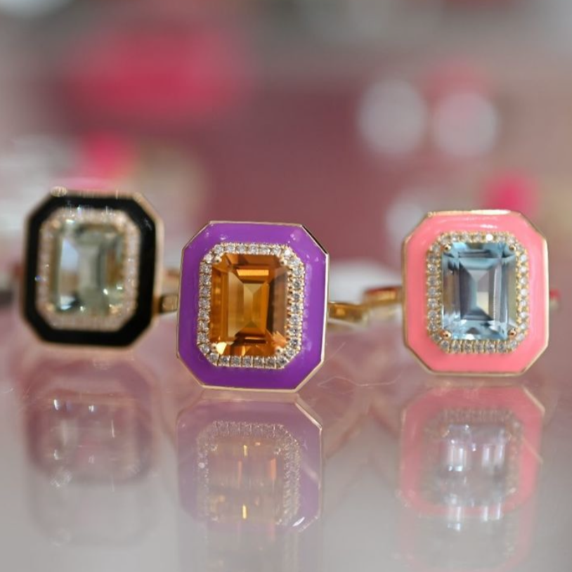 Cette bague splendide vient s'ajouter à nos pièces émaillées, avec une touche toujours plus pop ! Composée d'or 14 carats et d'un cabochon encadré d'émail corail, pavé de diamants et serti d'une somptueux cristal central. Un futur must-have qui s'inscrit à merveille dans l'ADN de la marque.