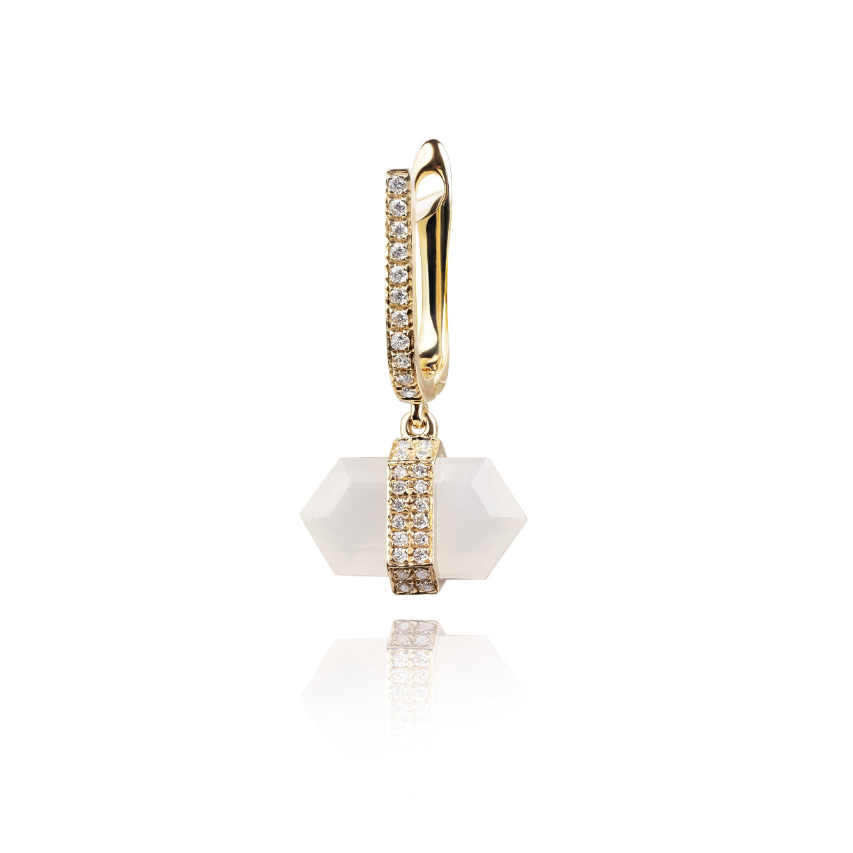 Boucle d'oreille en or 14 carats, moonstone et diamants. Vendue à l'unité. Peut être portée en paire.