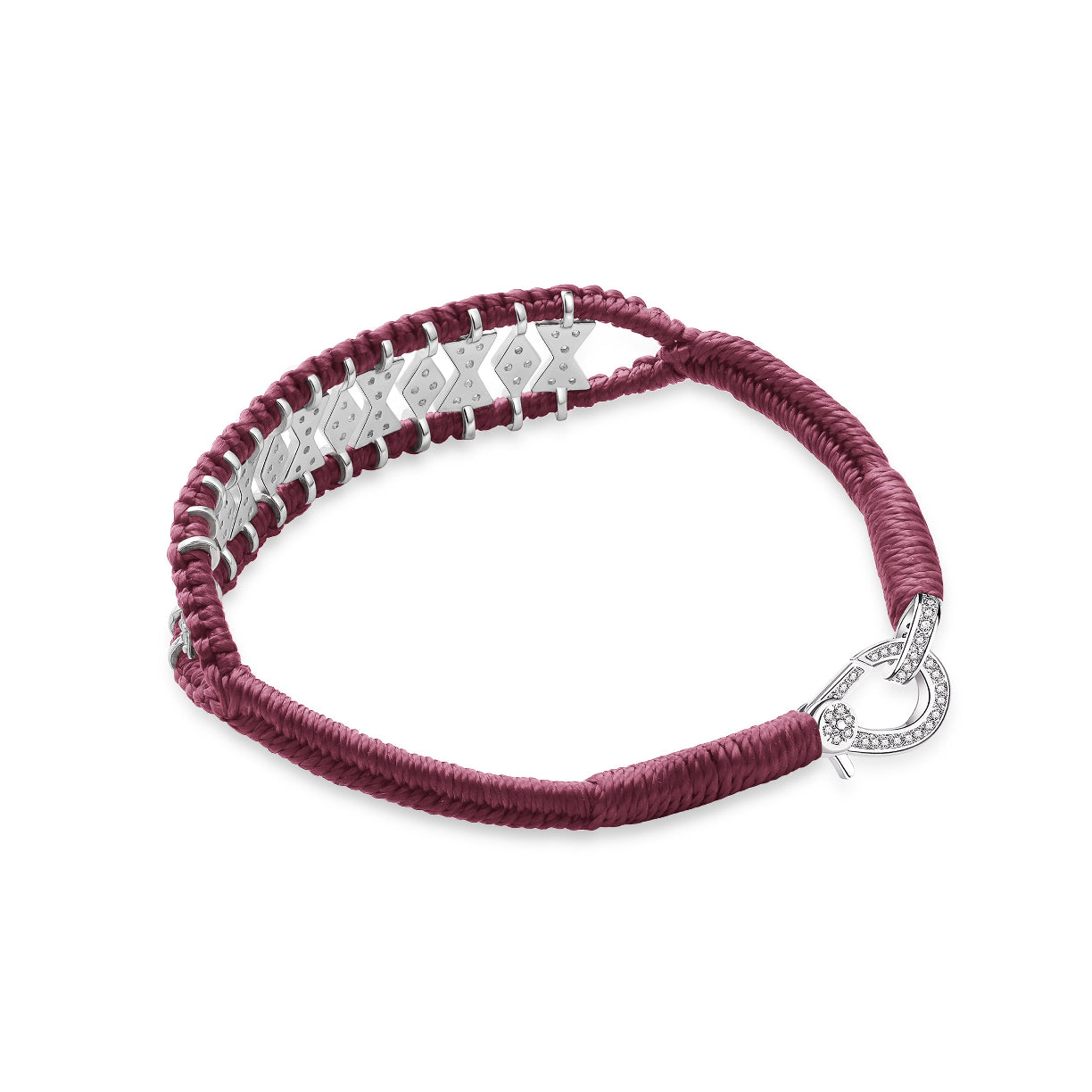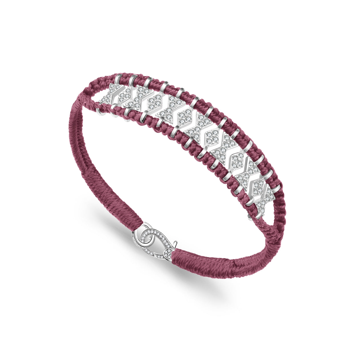 Bracelet fin en fil de coton tressé de couleur bamboo, décoré d’un motif en argent 925 et serti de moissanites.