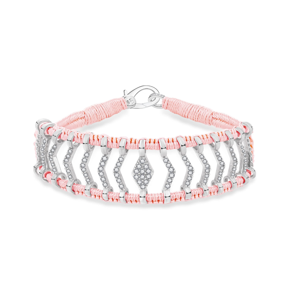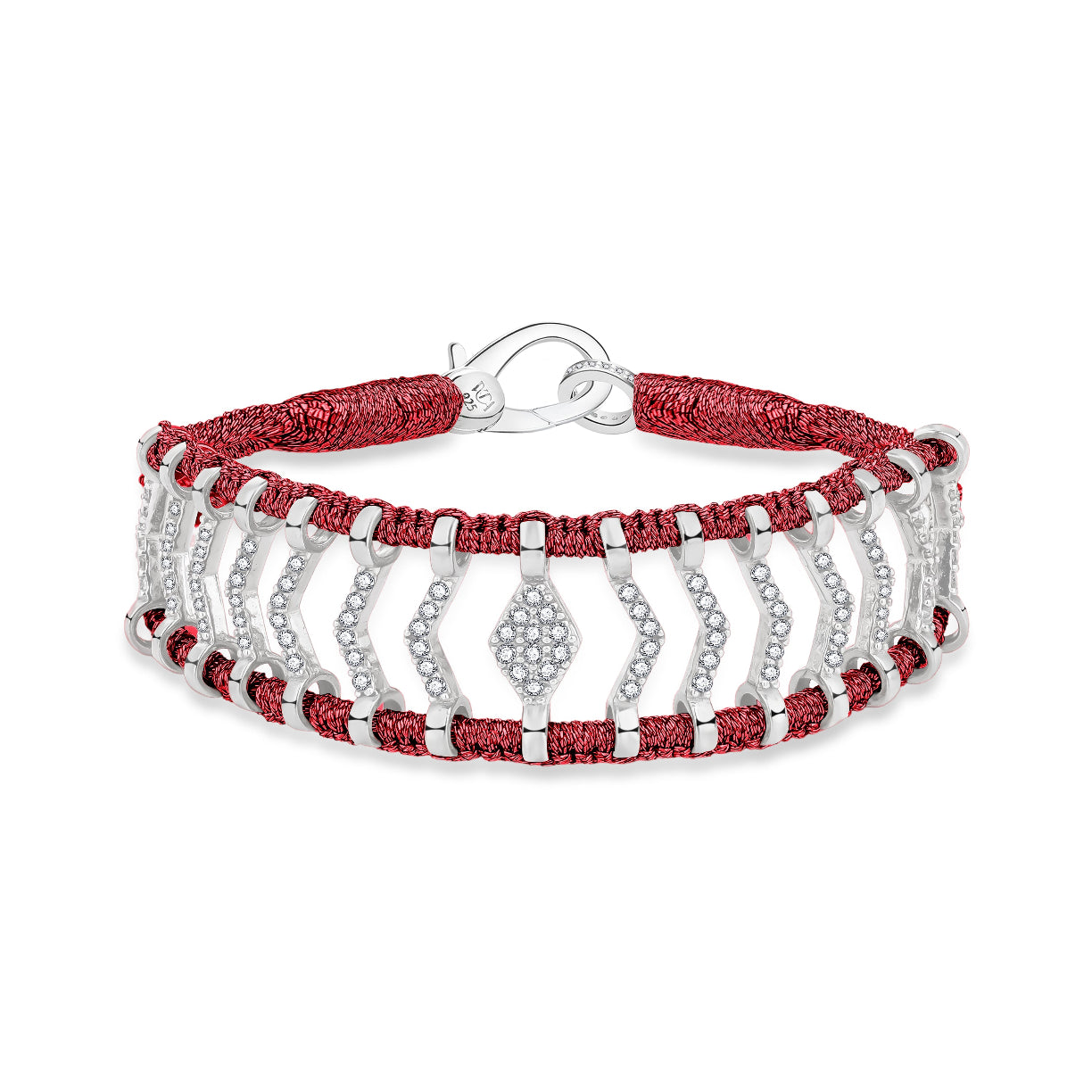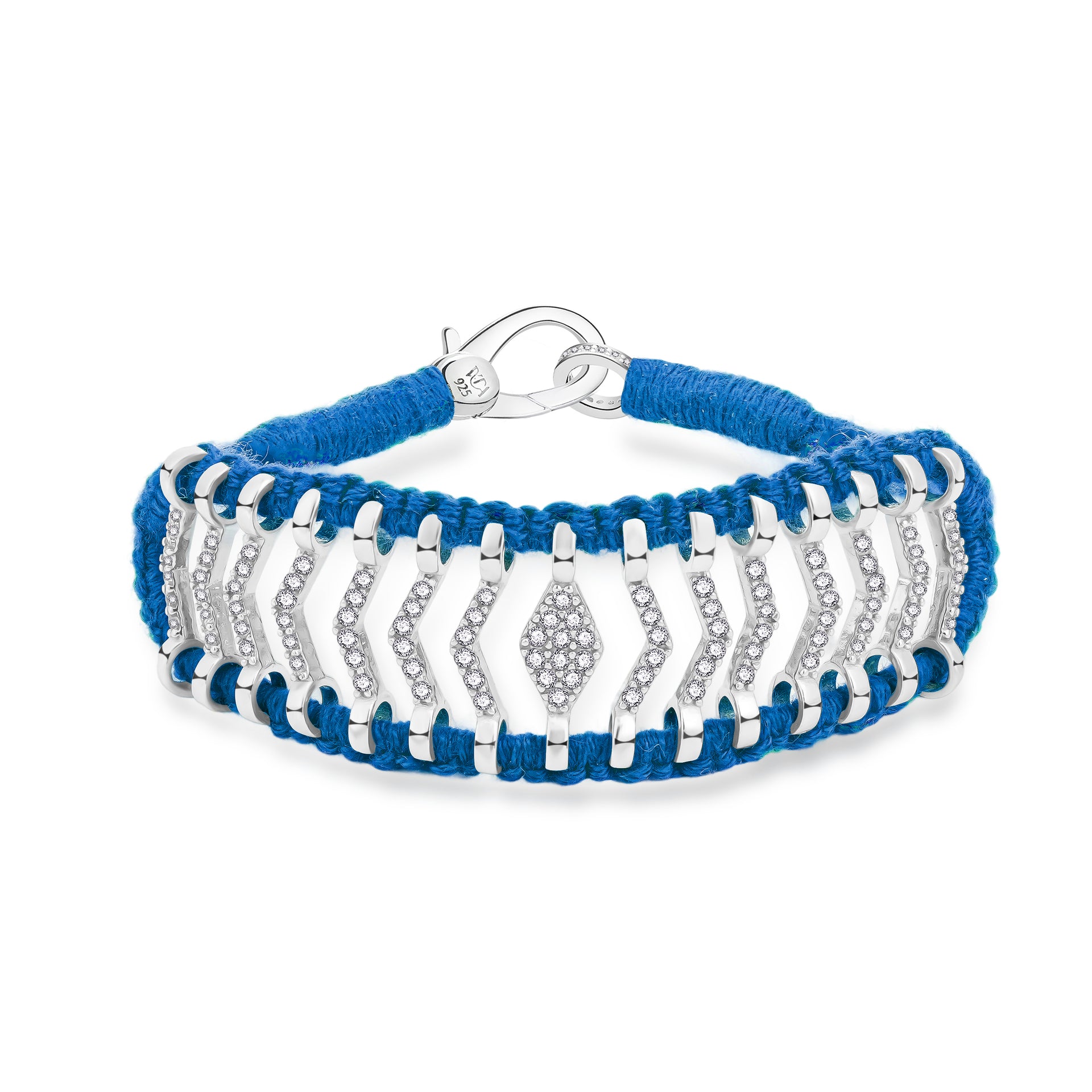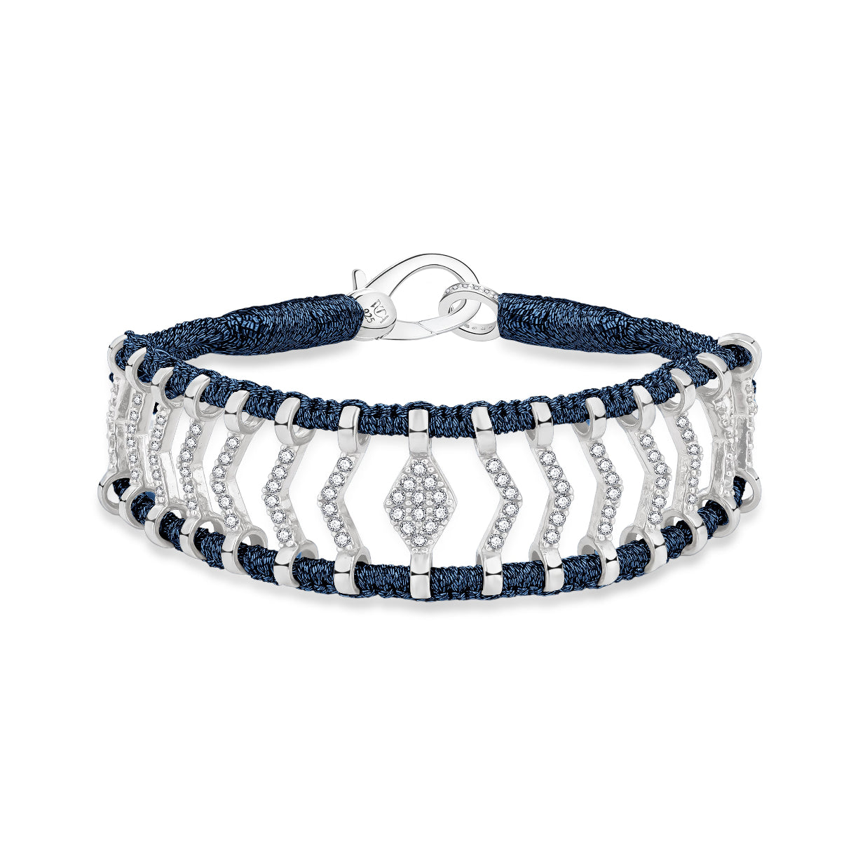 Bracelet fin en fil de lurex tressé de couleur grass, décoré d’un motif en argent 925 et serti de moissanites.